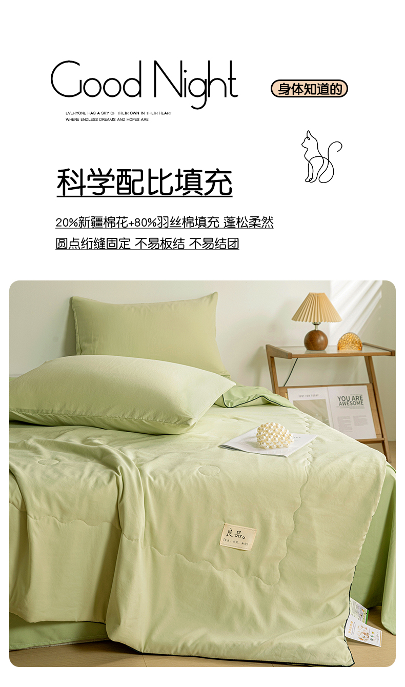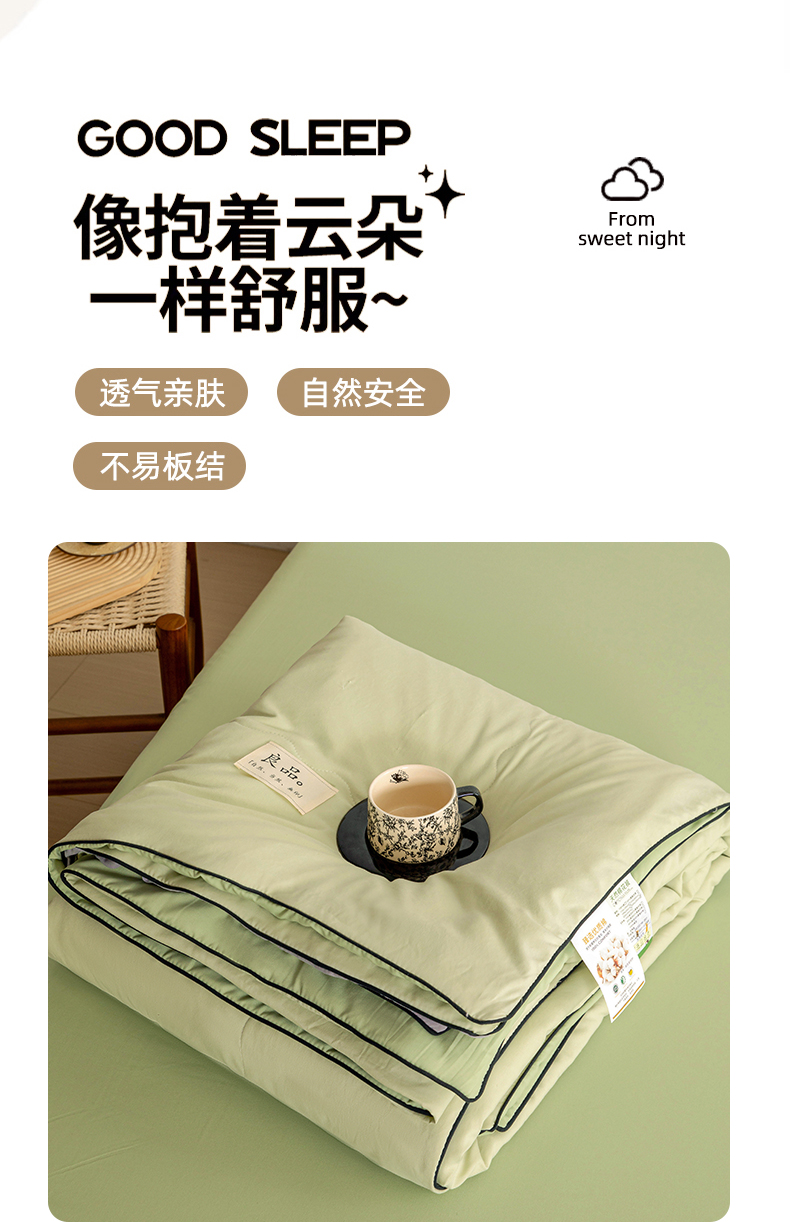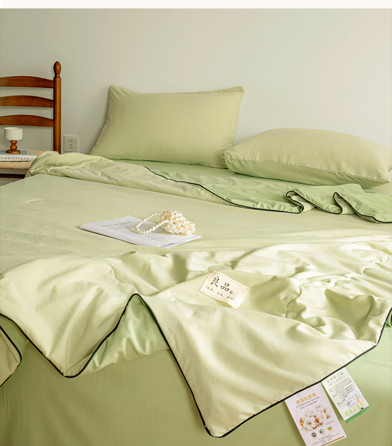 商品名称:易展家居 2026新款水洗棉新疆棉花夏被-嵌绳款 嵌绳-薄荷绿