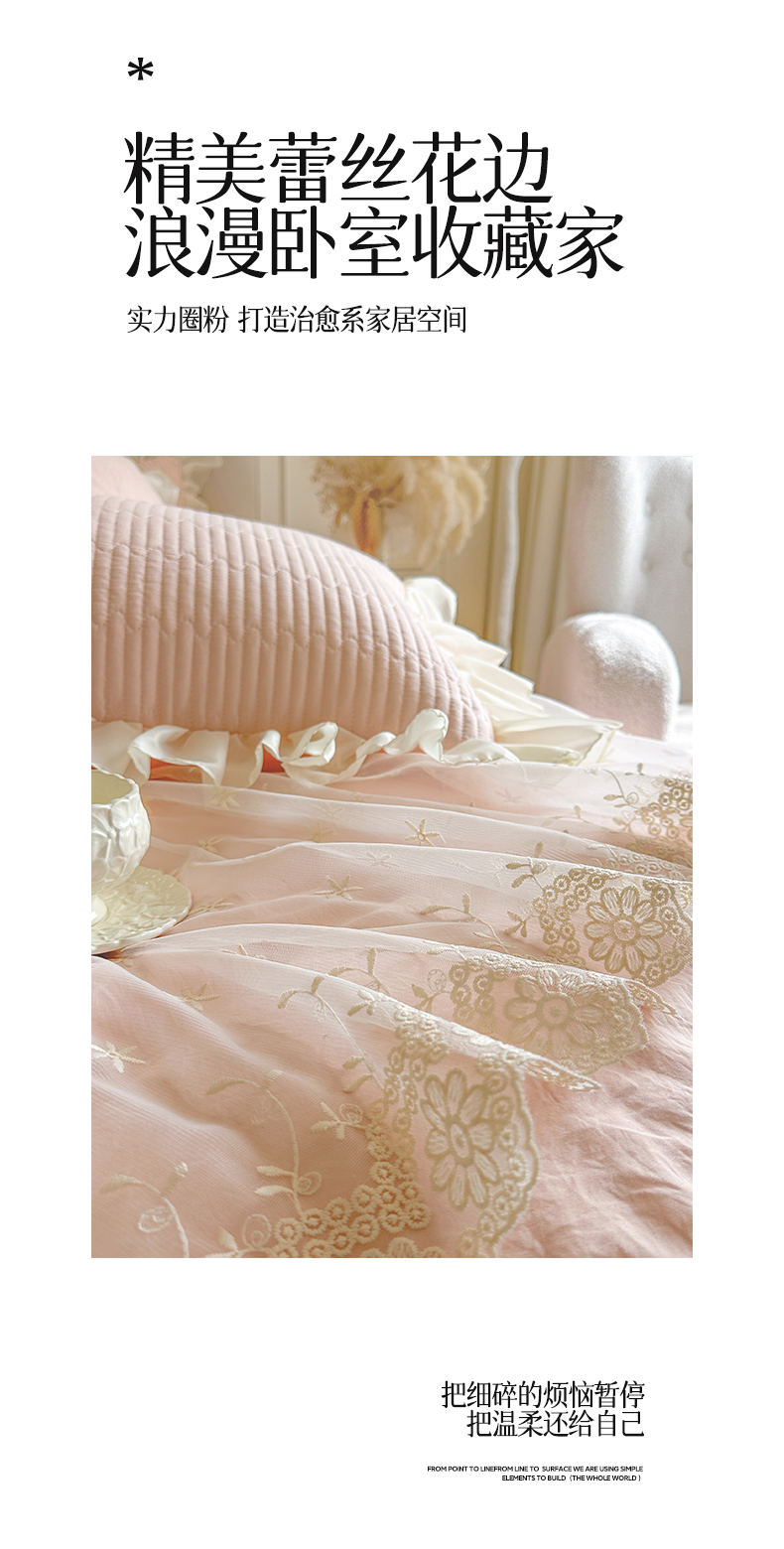 (总)瑞宝 2025新款法式花边全棉贡缎提花床裙款四件套-梦之语(控价265起),梦之语-蜜粉,梦之语-奶油白,梦之语-青柠绿,梦之语-香芋紫