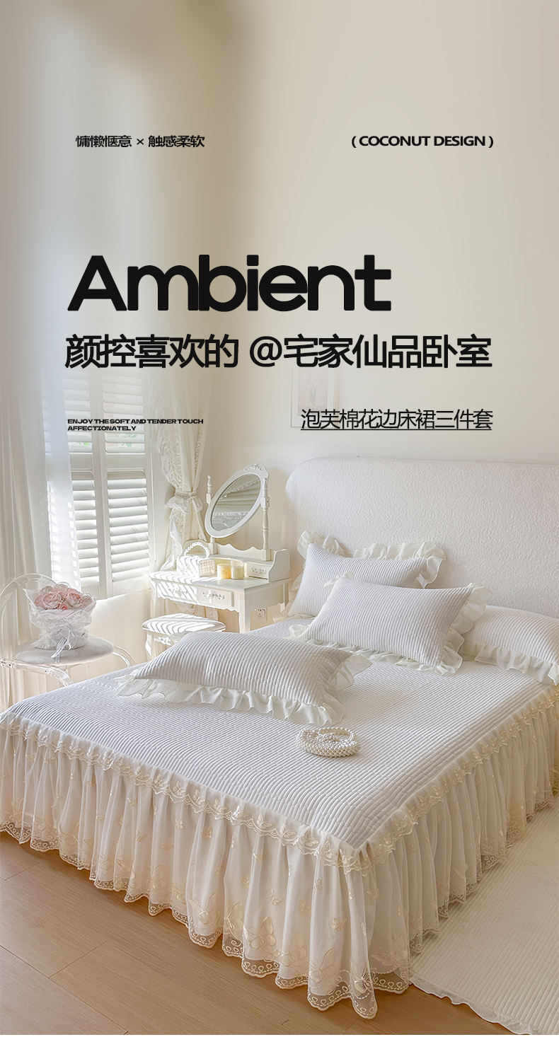 • 91家纺网 家纺一手货源 找家纺 (总)瑞宝 2026新款泡芙棉花边床裙三件套-栀子海,栀子海-茶绿,栀子海-高级米,栀子海-粉樱,栀子海-奶咖,栀子海-柔白,栀子海-天蓝,栀子海-玉色,栀子海-紫色