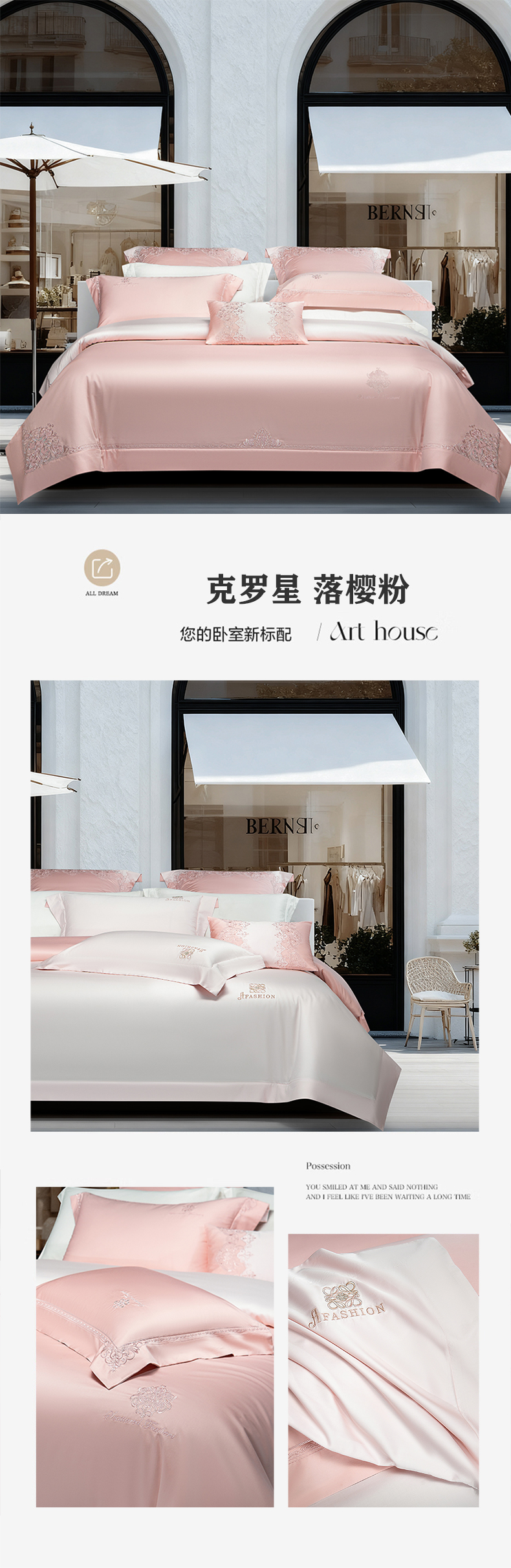 (总)诗黛尔 2026春夏新款长绒棉刺绣四件套黎境系列,黎境-香槟金,黎境-极光蓝,黎境-卡其色,黎境-落樱粉,黎境-绅士灰