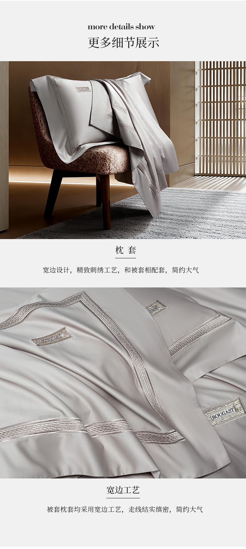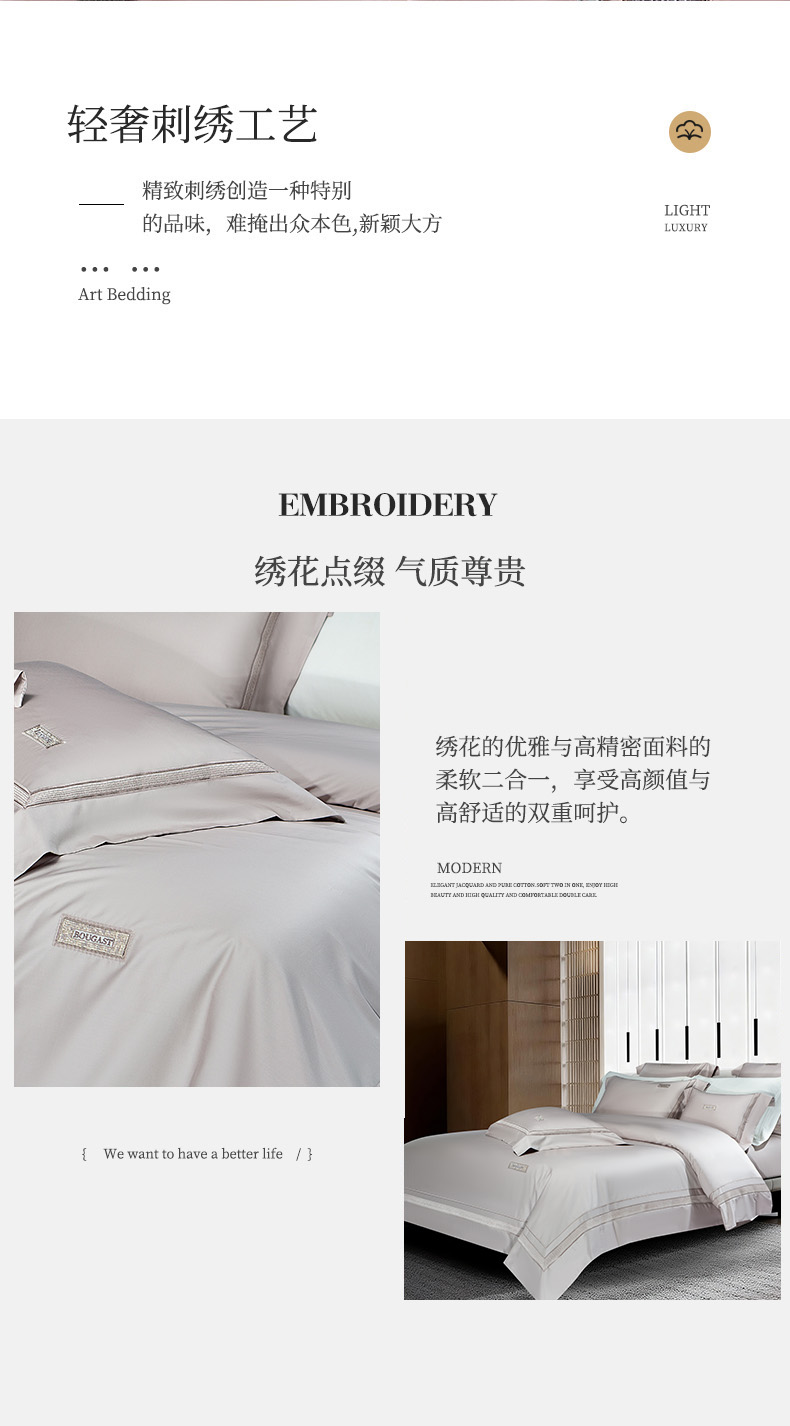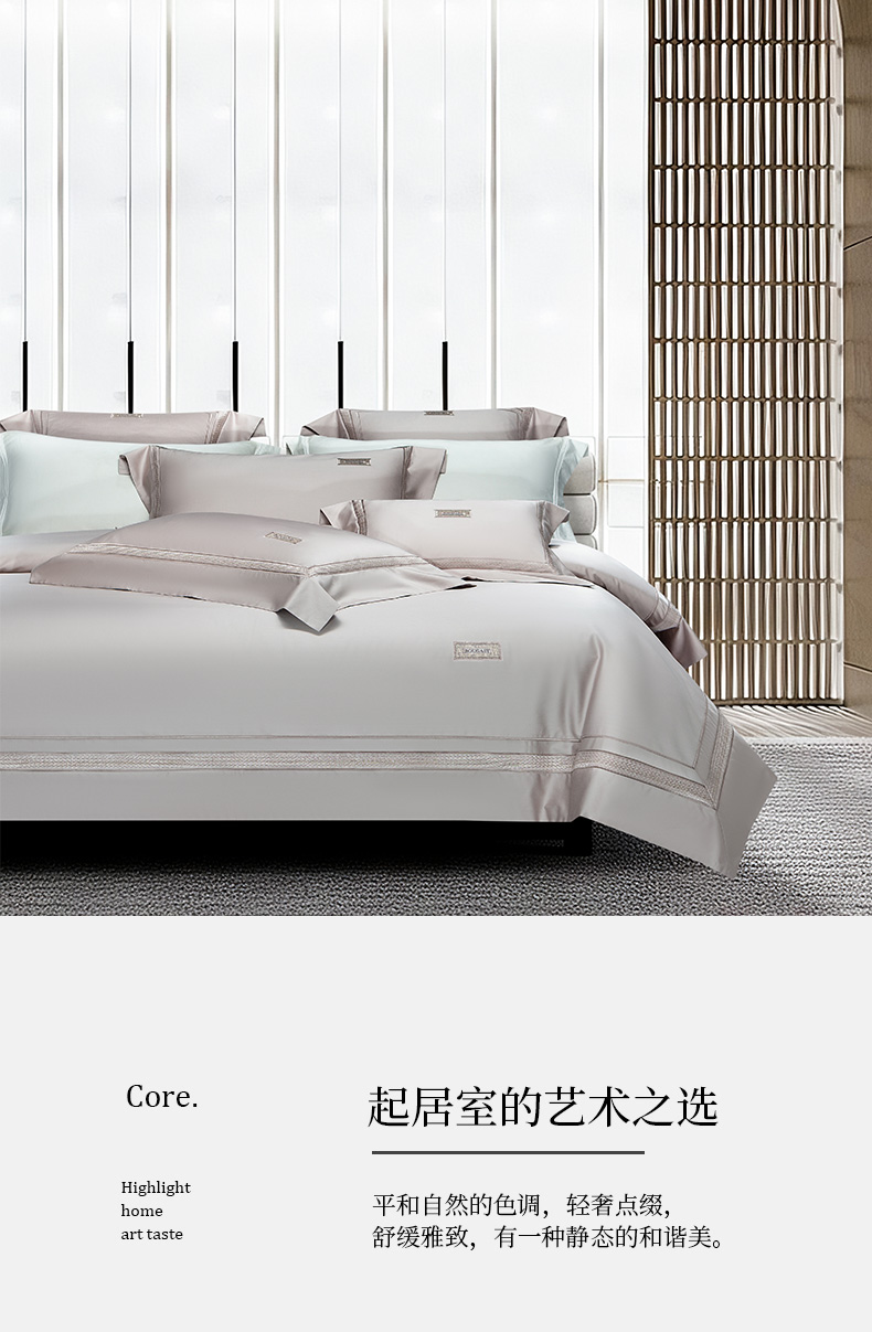 (总)诗黛尔 2026春夏新款长绒棉刺绣四件套黎境系列,黎境-香槟金,黎境-极光蓝,黎境-卡其色,黎境-落樱粉,黎境-绅士灰
