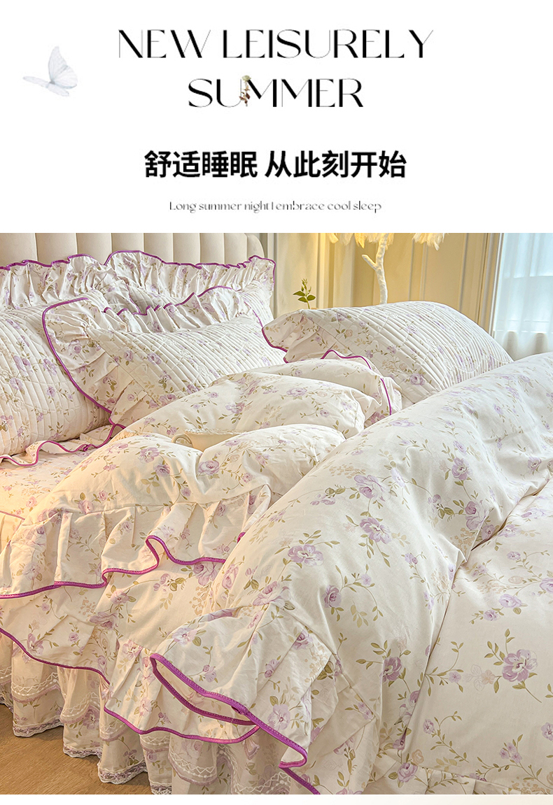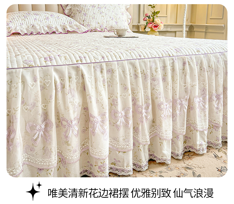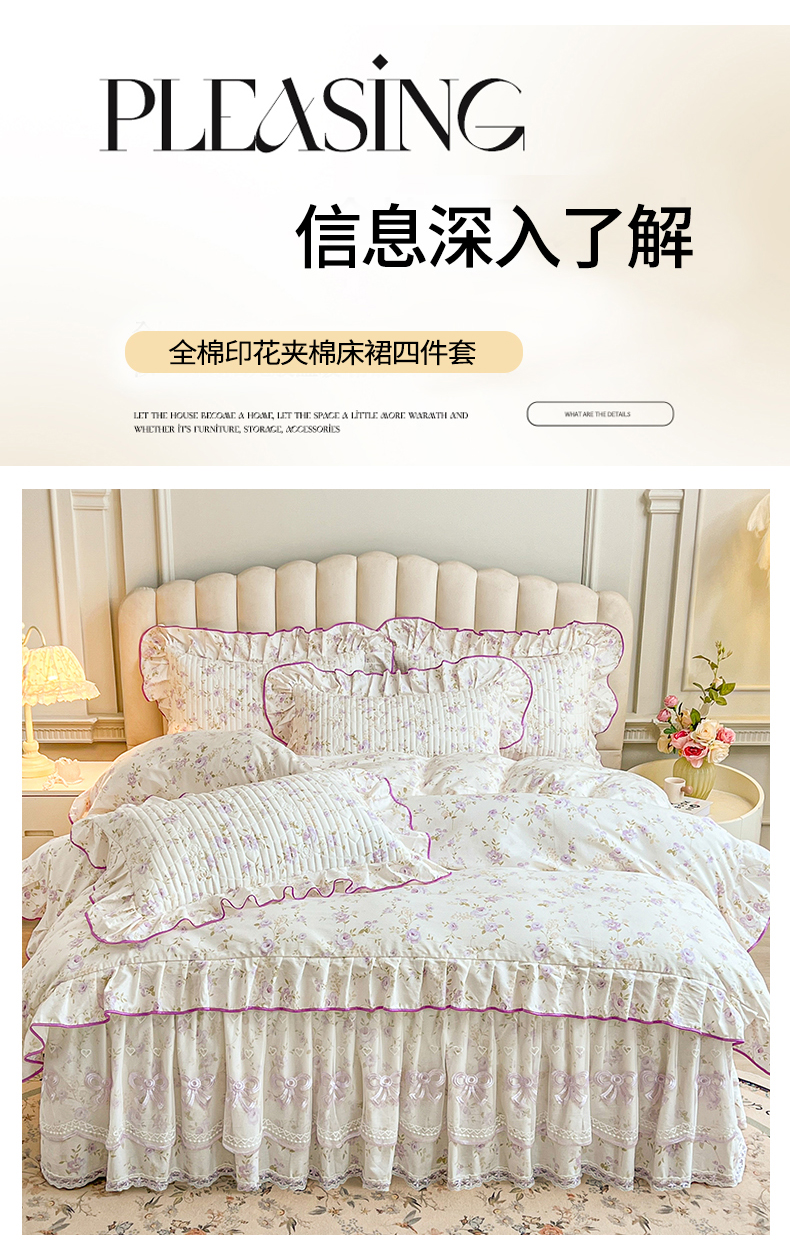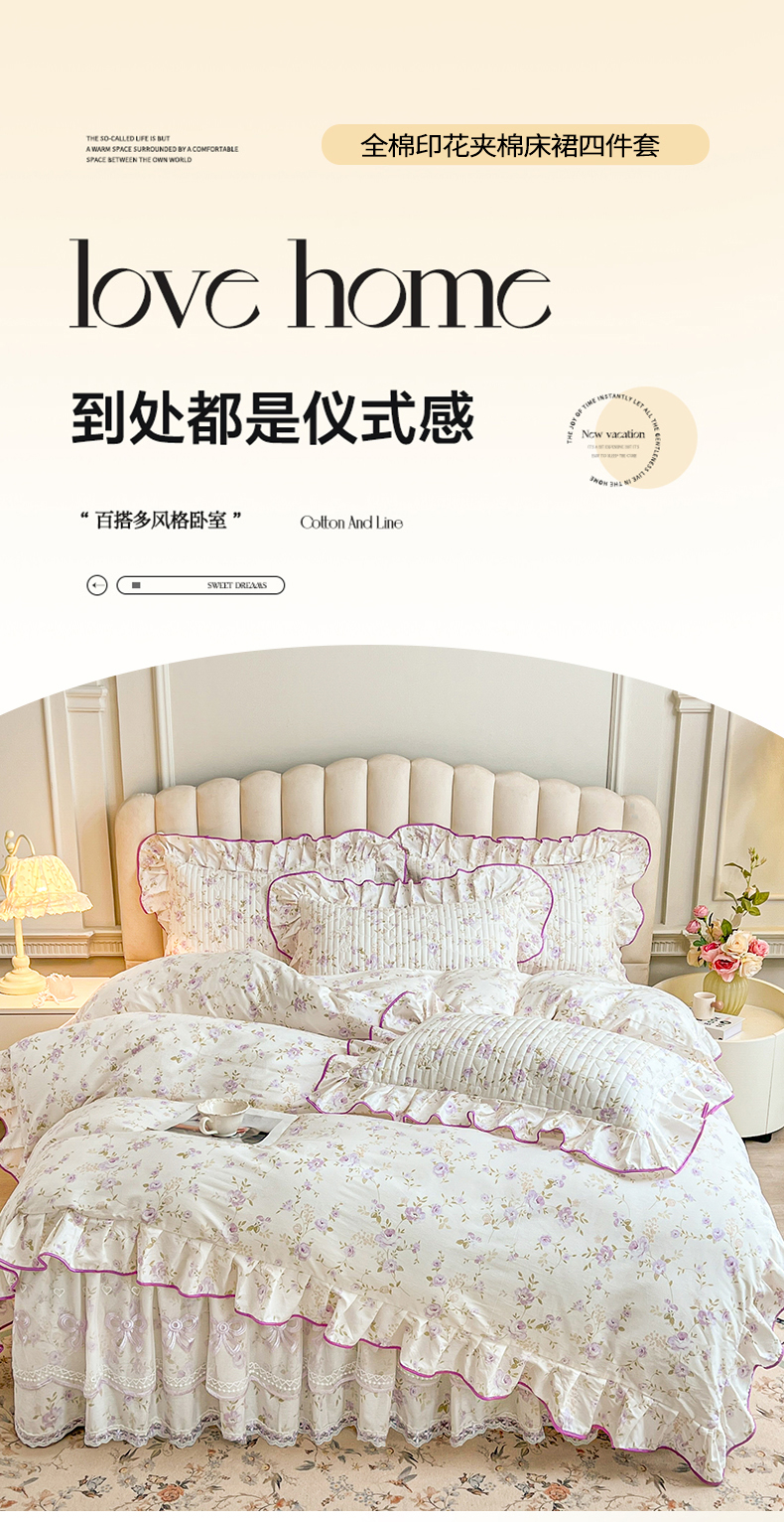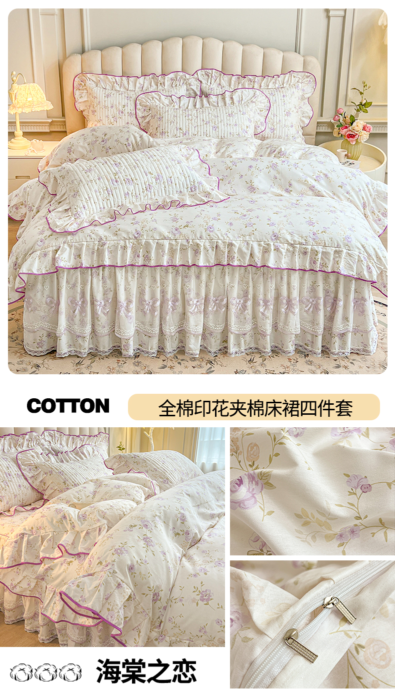 当前位置: 91家纺网 > 商品网购 > 床品套件 > 四件套 > 全棉普通四件套 > 宜凡家纺 2026新款全棉公主风夹棉床裙四件套 海棠之恋