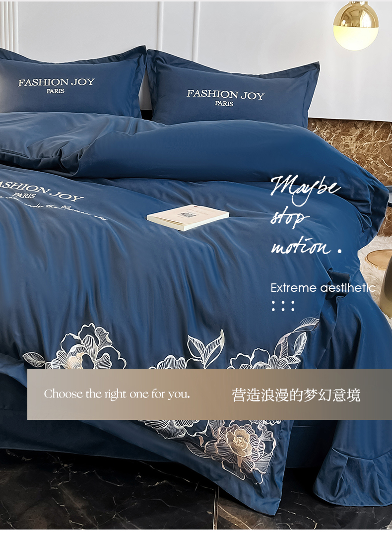 梵克保罗 2026新款直播热卖长绒棉全棉纯棉刺绣花边四件套-繁星 繁星-柠檬黄