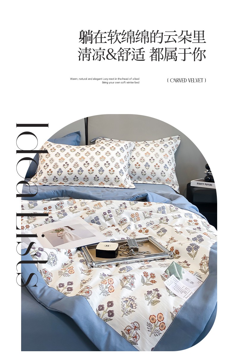 当前位置: 91家纺网 > 商品网购 > 床品套件 > 四件套 > 夏被四件套 > 帕拉美拉 2026新款A类棉麻夏被四件套 花颂