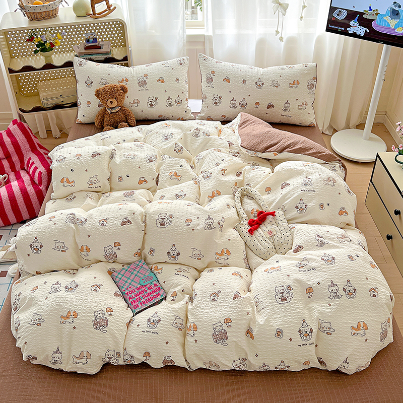 当前位置: 91家纺网 > 商品网购 > 床品套件 > 四件套 > 其它四件套 > 仟网汇 2026新款简单款泡芙纱印花四件套 花影女孩