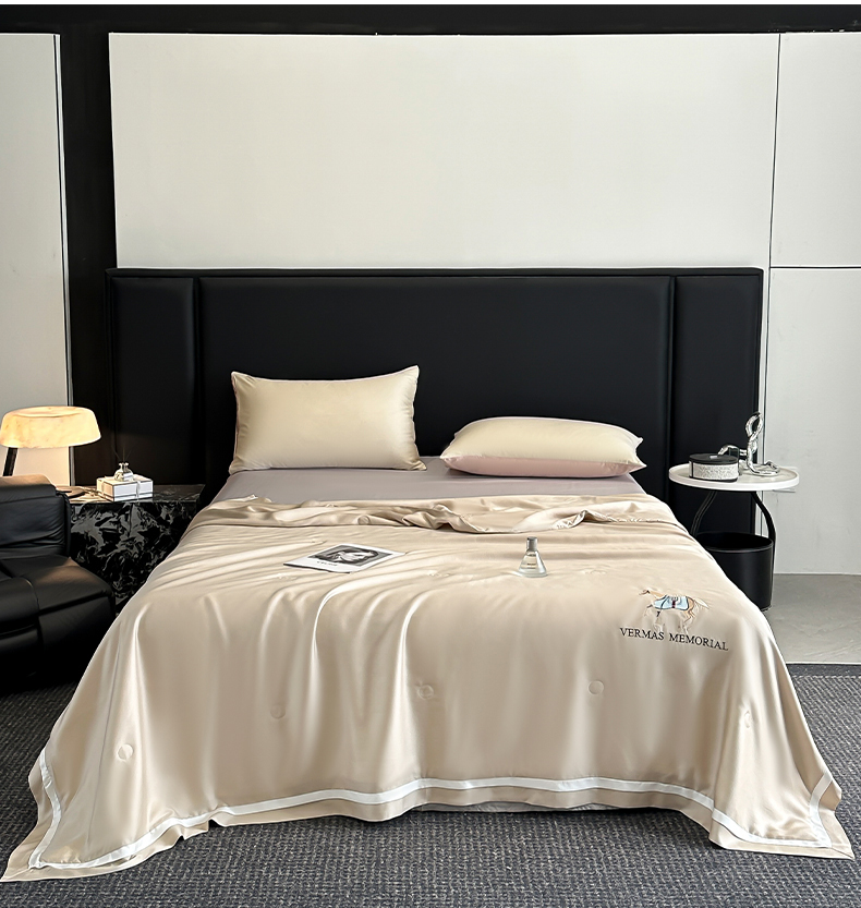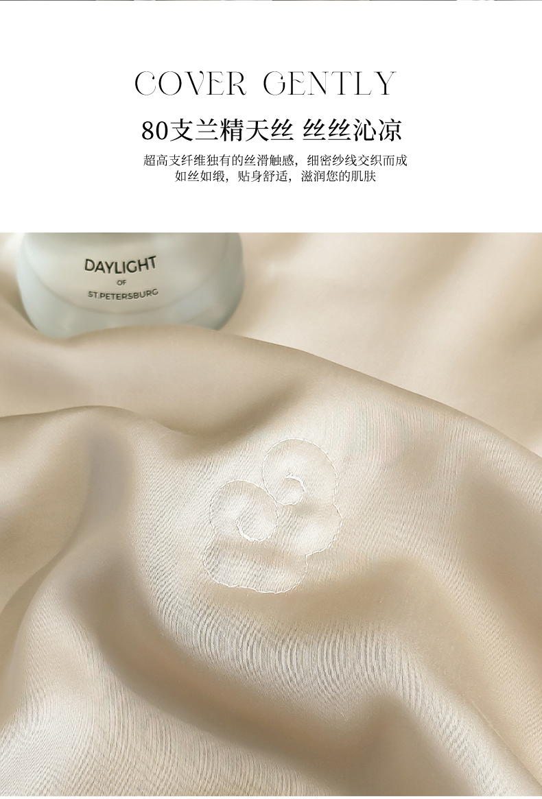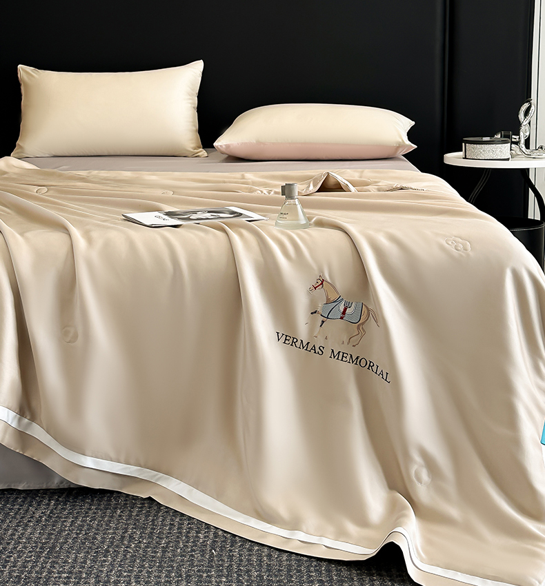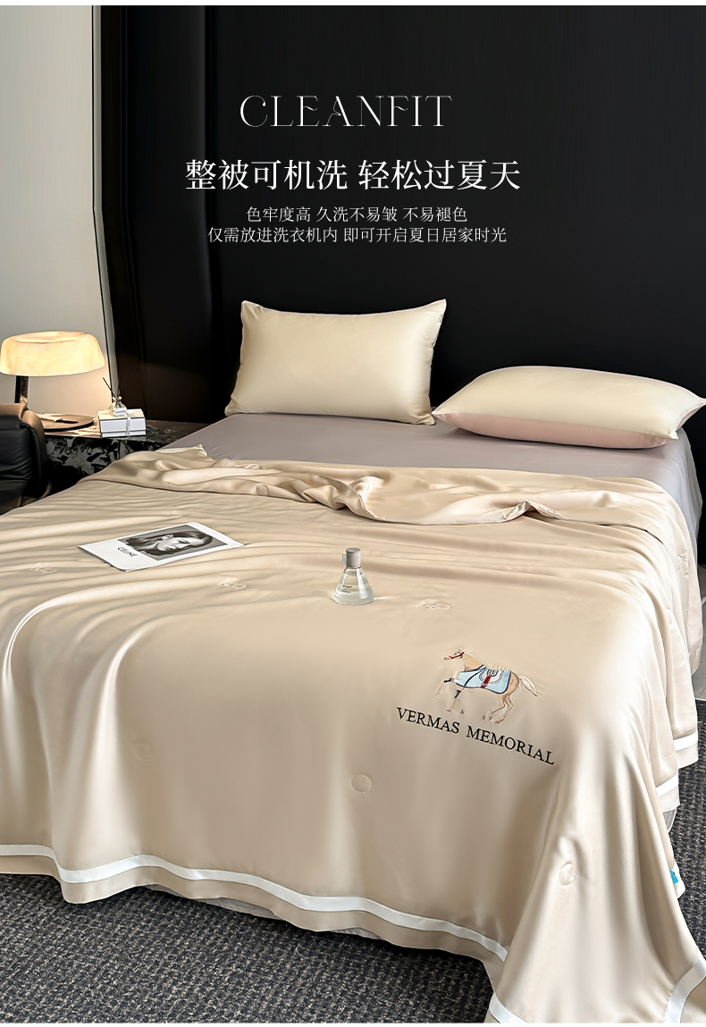 商品名称:薇玛仕 2026新款绣花80支兰精天丝可水洗蚕丝被100蚕丝填充夏凉被空调被 香槟咖
