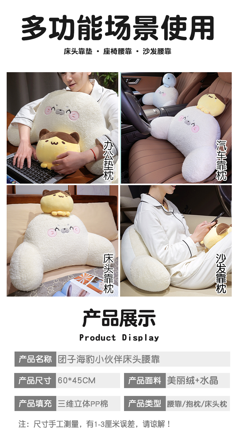 商品名称:仟亿莱 2026新款团子海豹小伙伴拥抱式腰靠 蓝色团子海豹