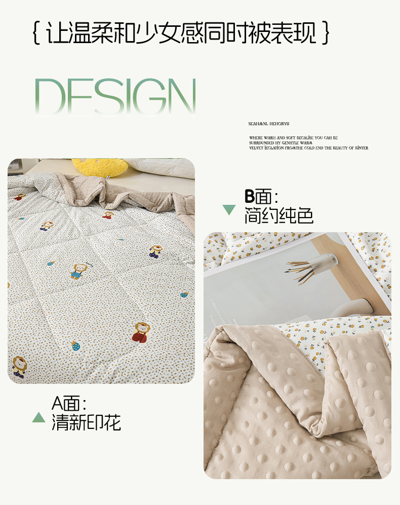 (总)壹张床 2025新款A类新疆棉花被糯糯棉子母被冬被印花被芯春秋被学生被子母扣系列,粉色,灰色,米白