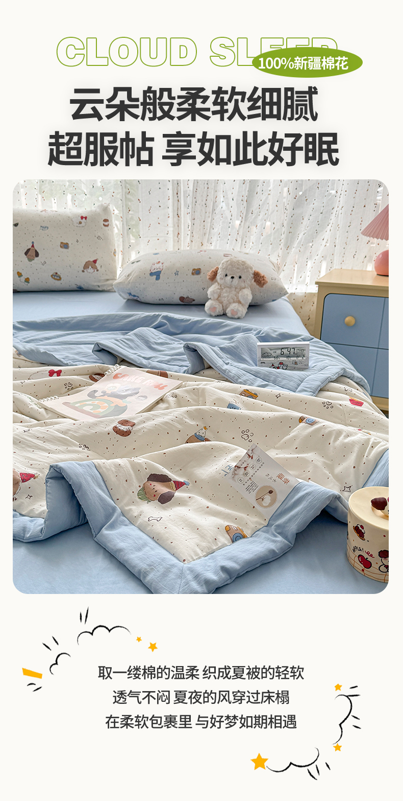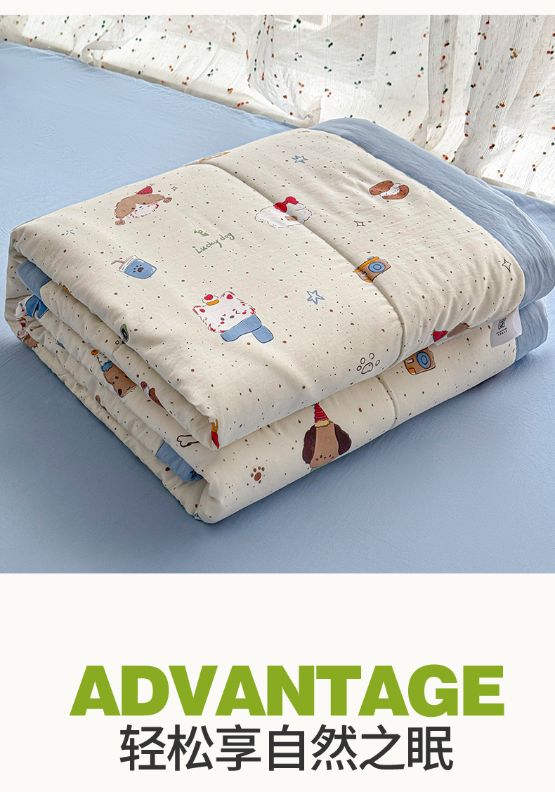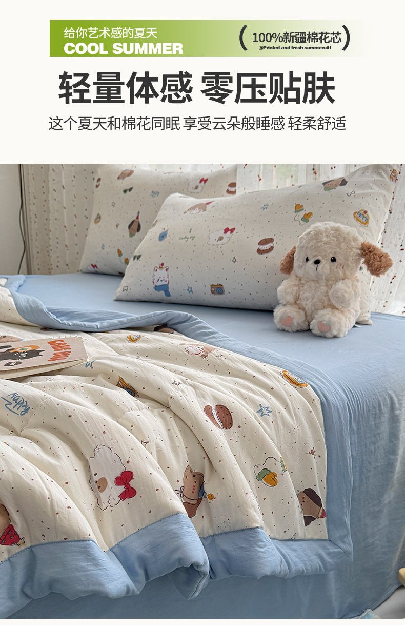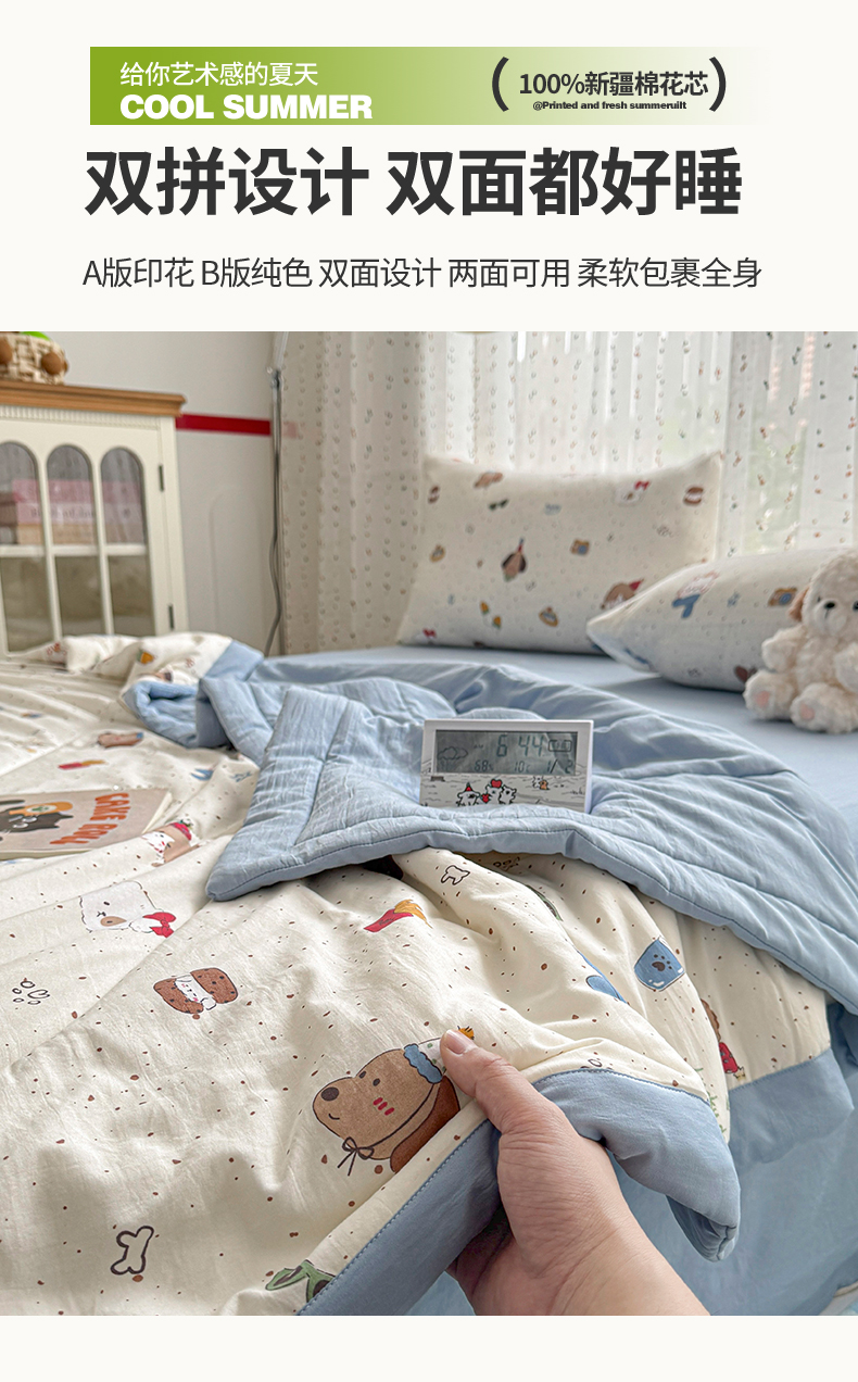 商品名称:尊妙被业 2026新款水洗棉棉花夏被100%新疆棉花填充包检测 萌趣小狗