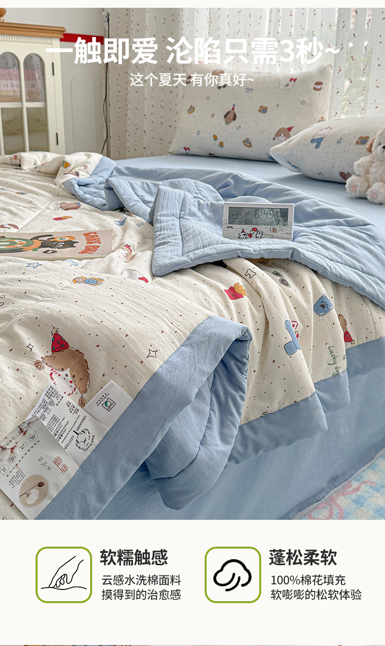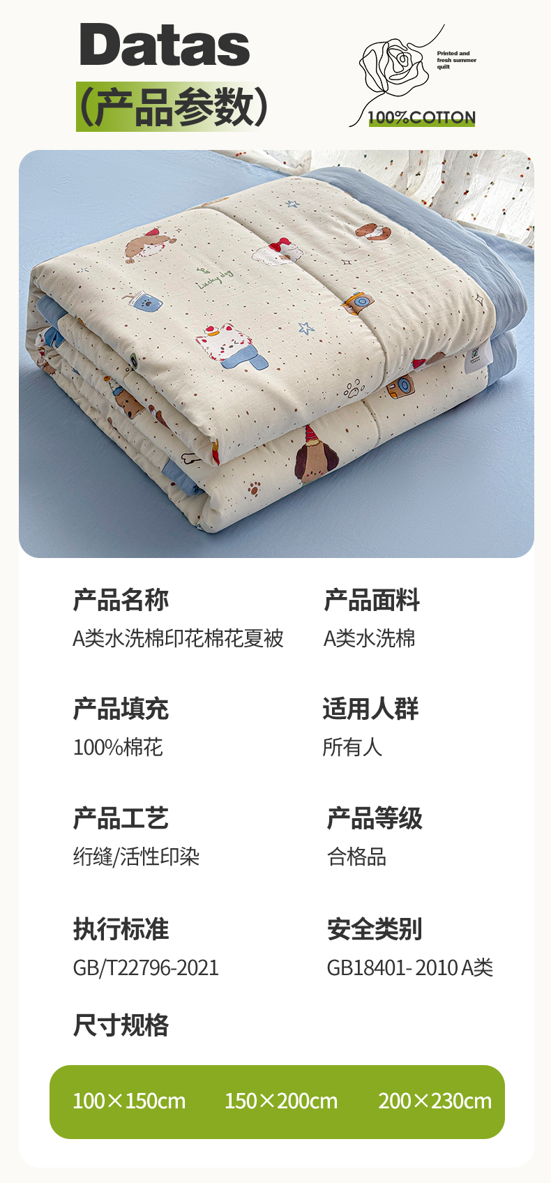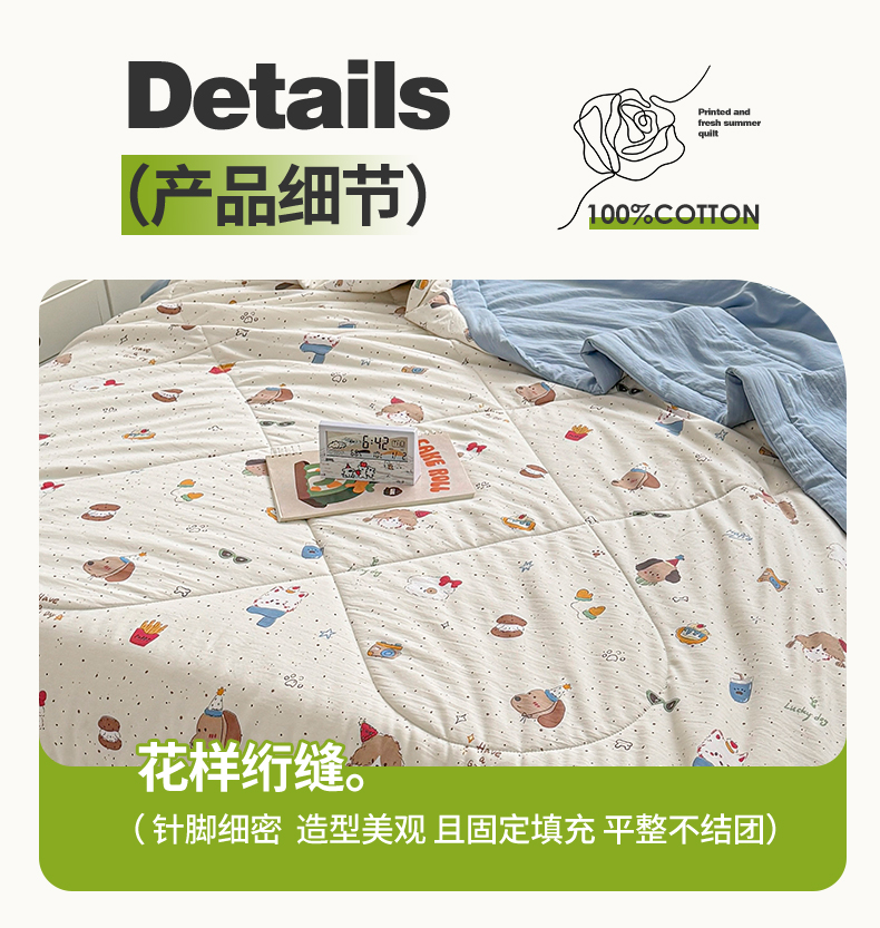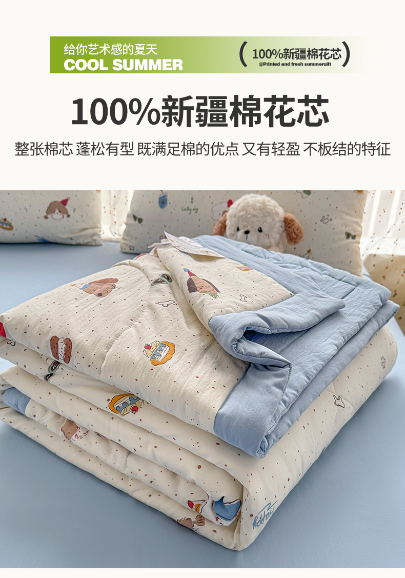 商品名称:尊妙被业 2026新款水洗棉棉花夏被100%新疆棉花填充包检测 萌趣小狗