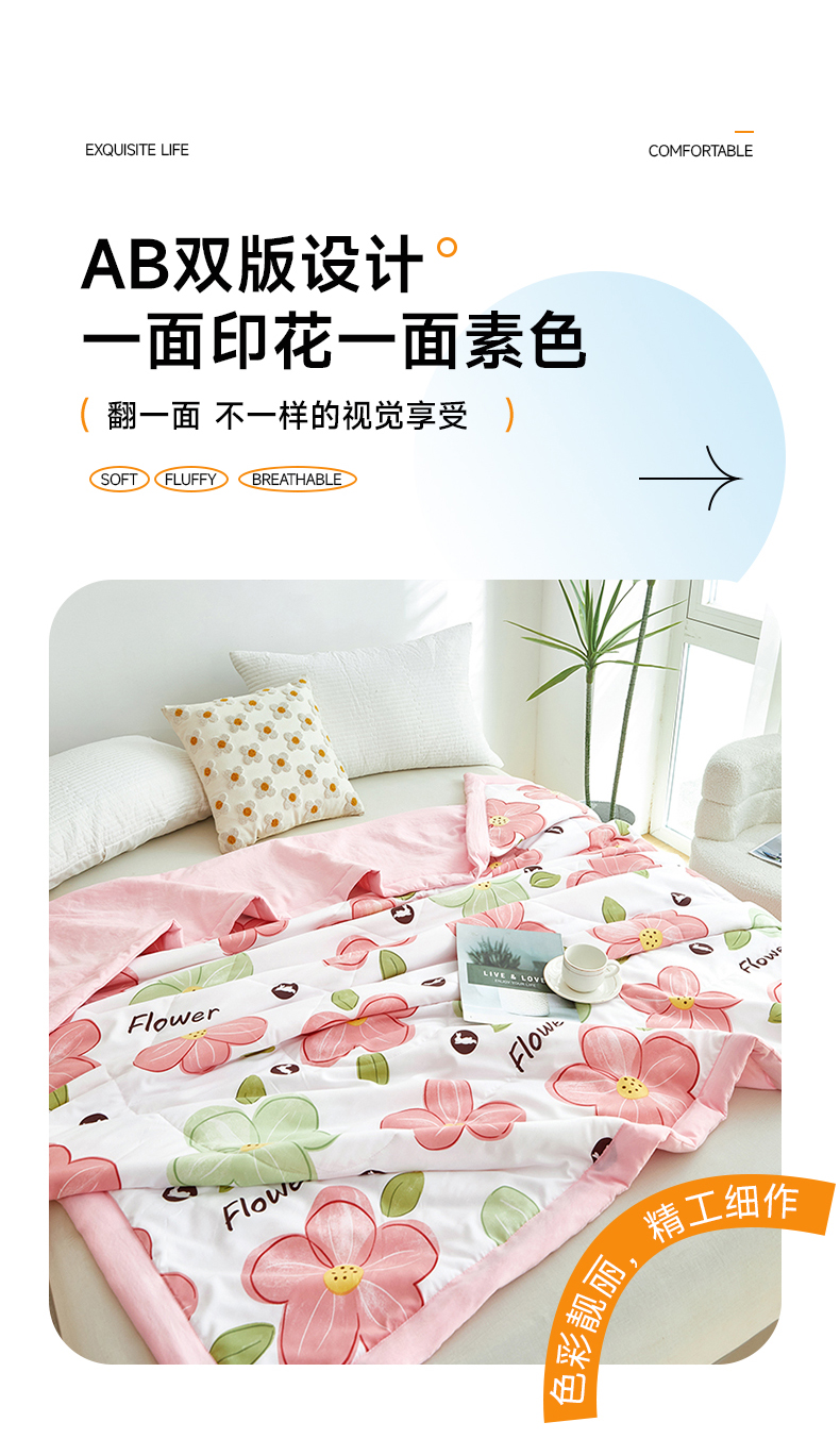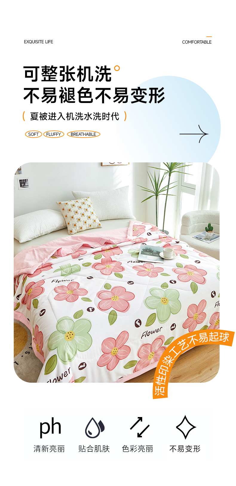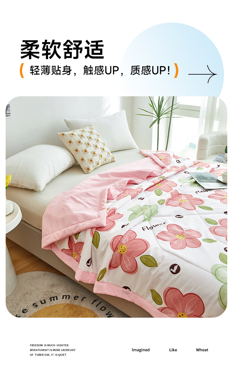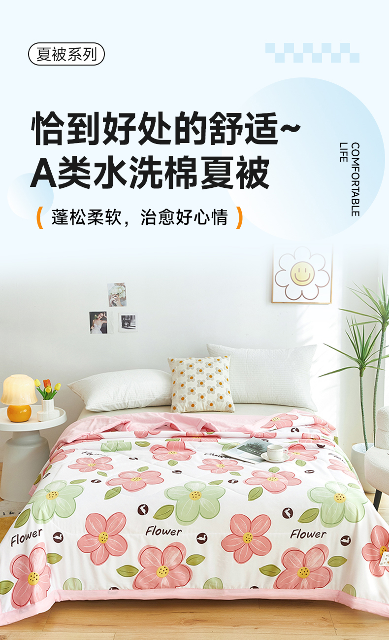 商品名称:欧朵 2026新款A类水洗棉夏被系列 花田粉