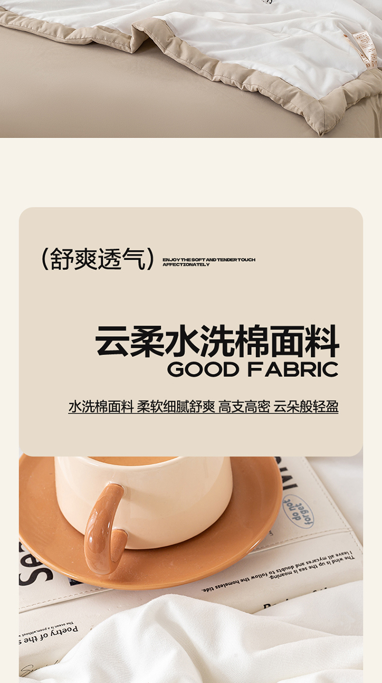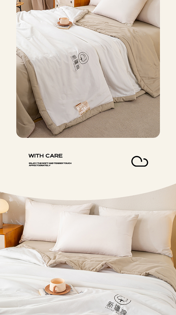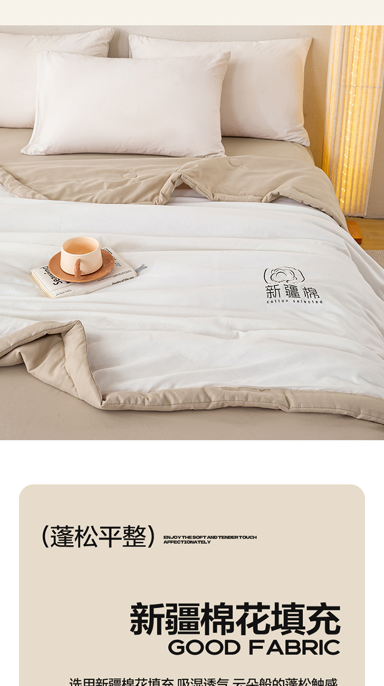 商品名称:2026新款撞色双拼新疆棉花被夏被无印风水洗棉空调被夏凉被子 棉朵-卡其白