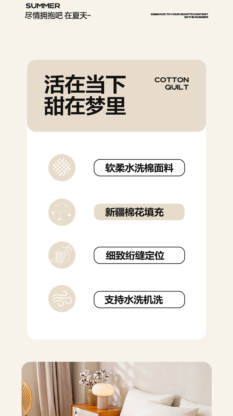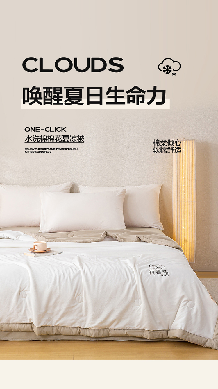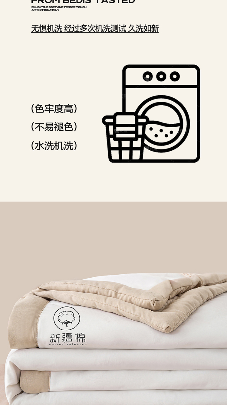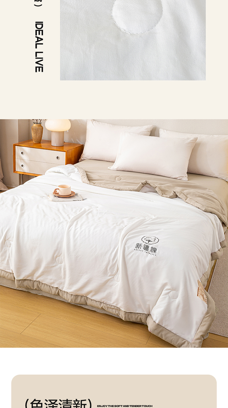 商品名称:2026新款撞色双拼新疆棉花被夏被无印风水洗棉空调被夏凉被子 棉朵-卡其白