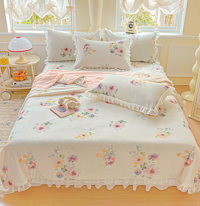 当前位置: 91家纺网 > 商品网购 > 床品套件 > 四件套 > 夏被四件套 > 栩裕纺织 2026新款(常年不断货)A类凉感丝床裙款凉席夏被四件套花边空调被三件套 莫妮卡