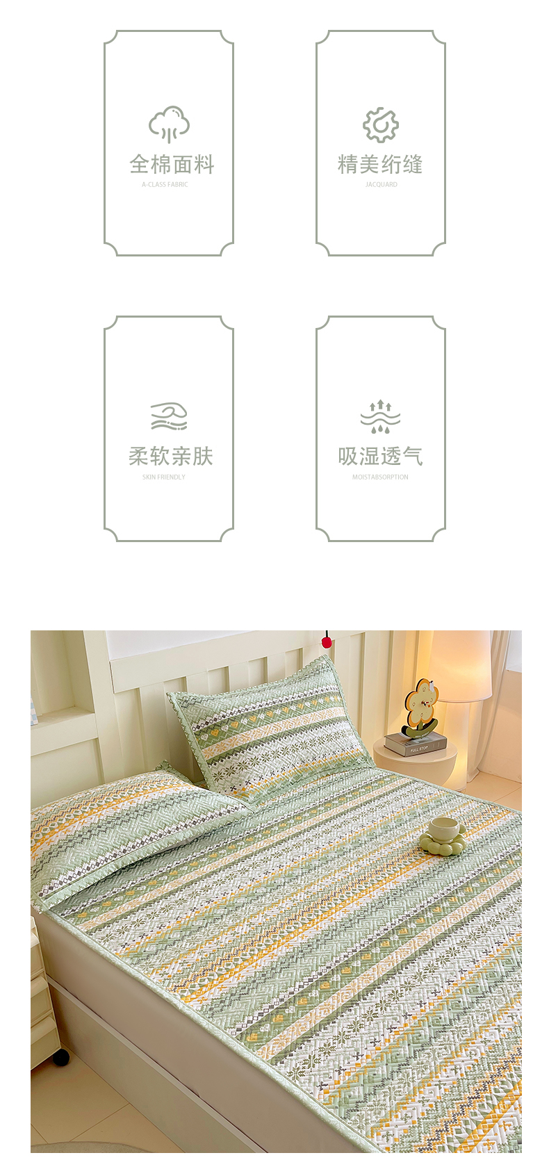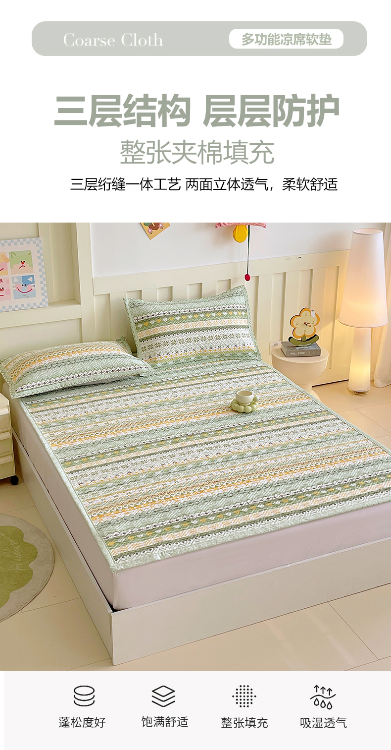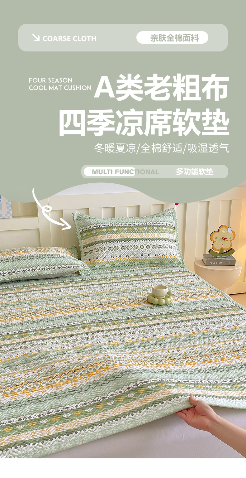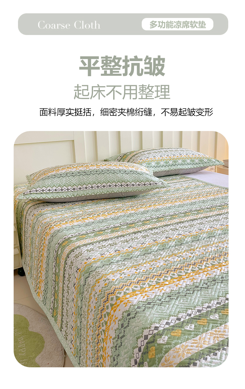 当前位置: 91家纺网 > 商品网购 > 床上用品 > 凉席 > 其他凉席 > 金鑫汇家纺 2026春夏新款成人床新花型老粗布夹棉床盖软凉席席子可以机洗 星辰-绿