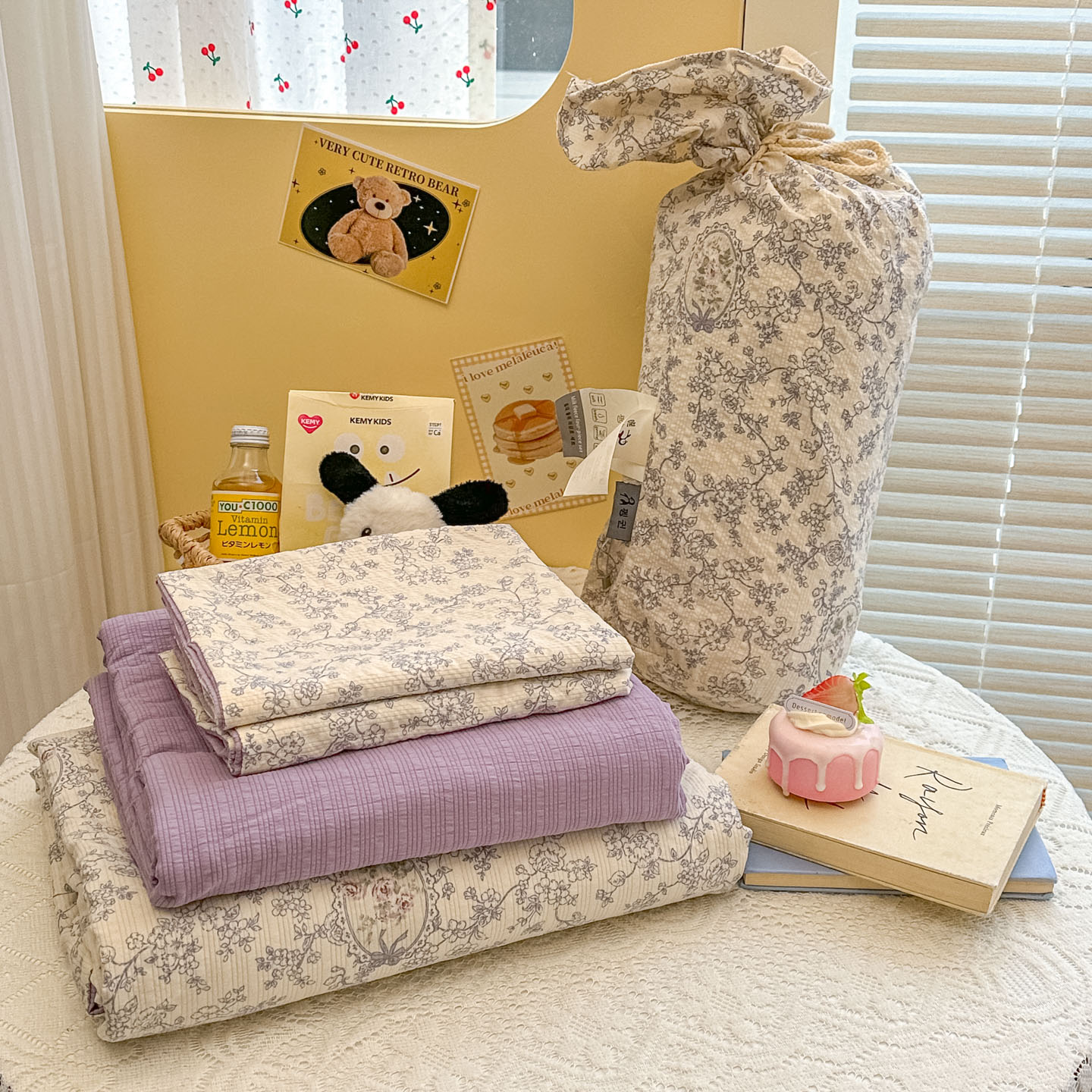 (总)暖伊家居 2026新款澳洲原单仿棉布袋四件套 硬包,腊肠狗,可可糖豆,格韵,野卉春,繁花,樱花可可,咖啡熊,芊朵,米蔷薇,清叙,樱花集,紫蝶