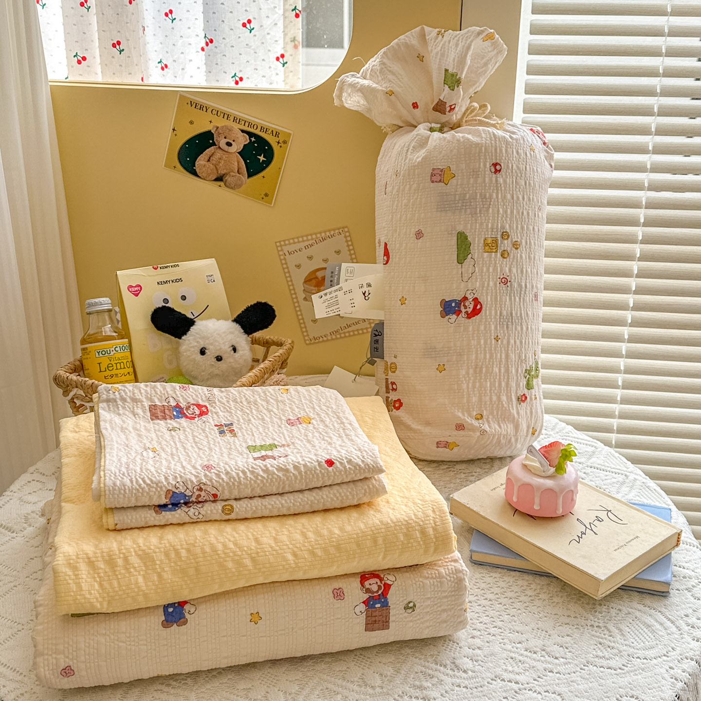 (总)暖伊家居 2026新款糖果小布袋泡芙纱四件套,组合图仅供展示,马里奥,彩色爱心,费尔岛,格纹爱心,海盐蝴蝶结,韩式梨梦,黑皮KT,简约巴恩,浪漫繁花,棉花糖小狗,奶油波点,南法秘境,少女KT,生日小狗,水墨槿咖,松木枫林,碎花兔熊,童年木马,星星人,薰衣紫花,栀夏来信