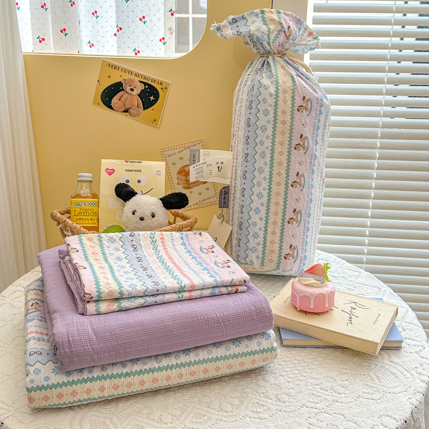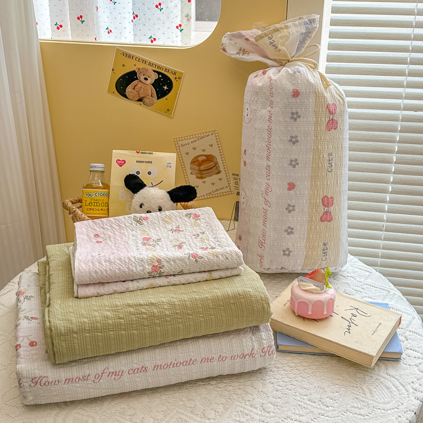 暖伊家居 2026新款糖果小布袋泡芙纱四件套 组合图仅供展示