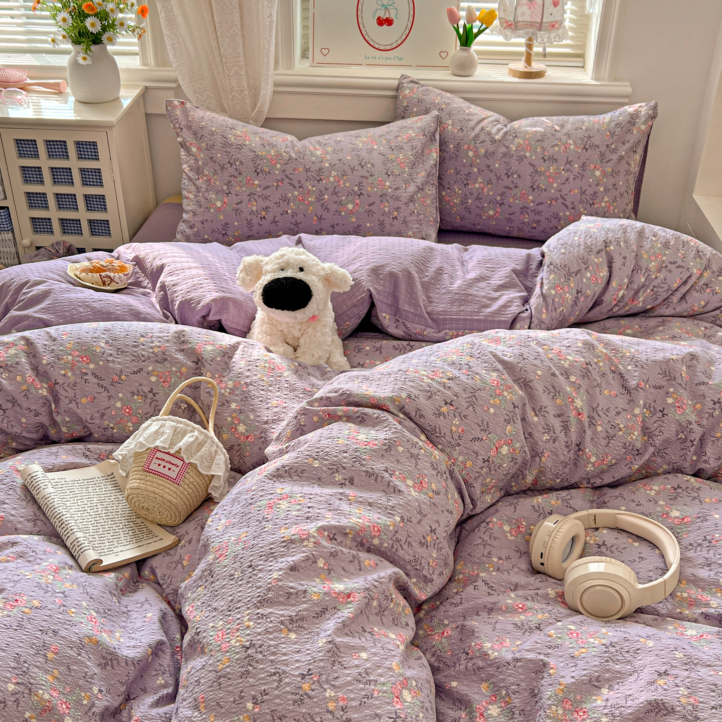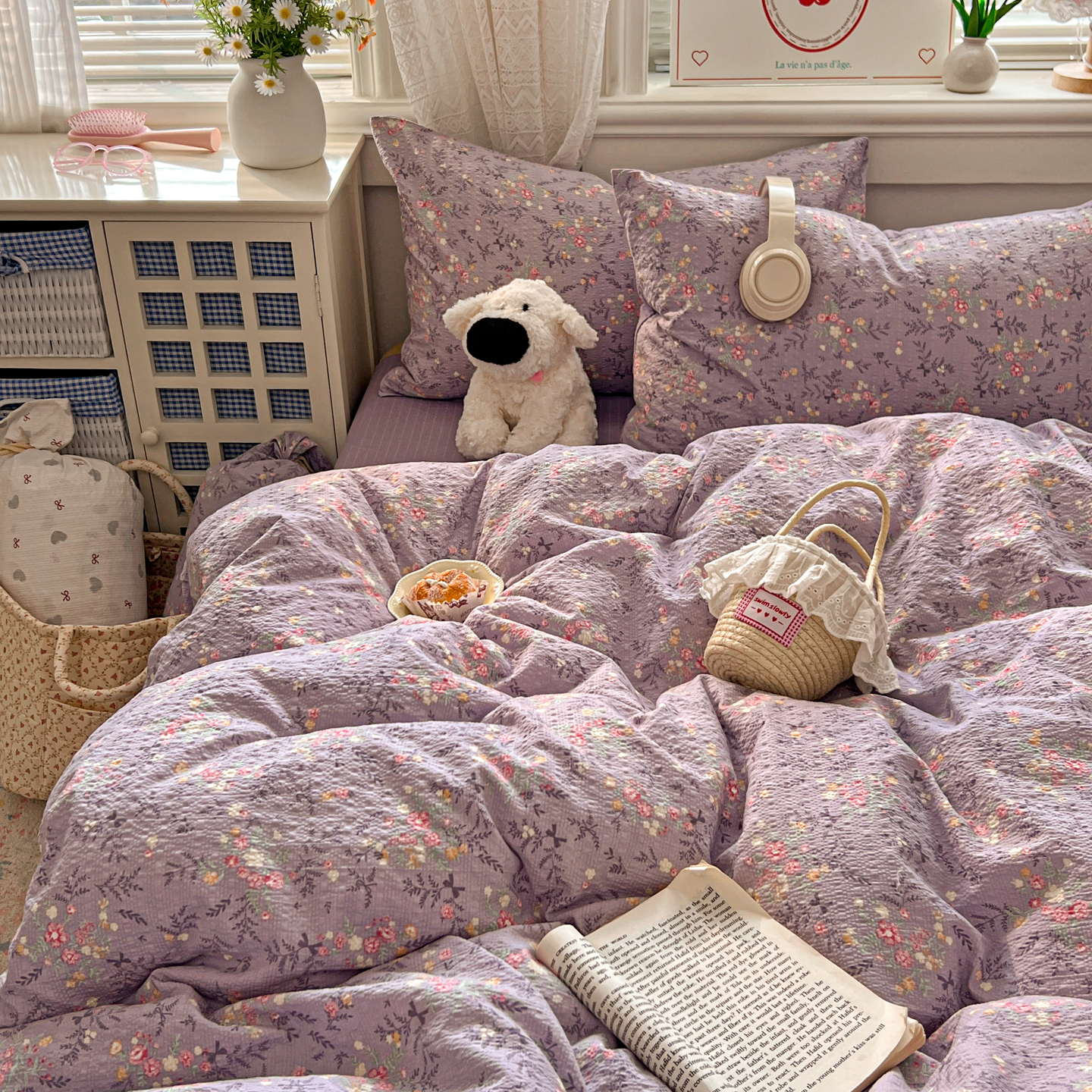 (总)暖伊家居 2026新款澳洲原单仿棉布袋四件套 硬包,腊肠狗,可可糖豆,格韵,野卉春,繁花,樱花可可,咖啡熊,芊朵,米蔷薇,清叙,樱花集,紫蝶