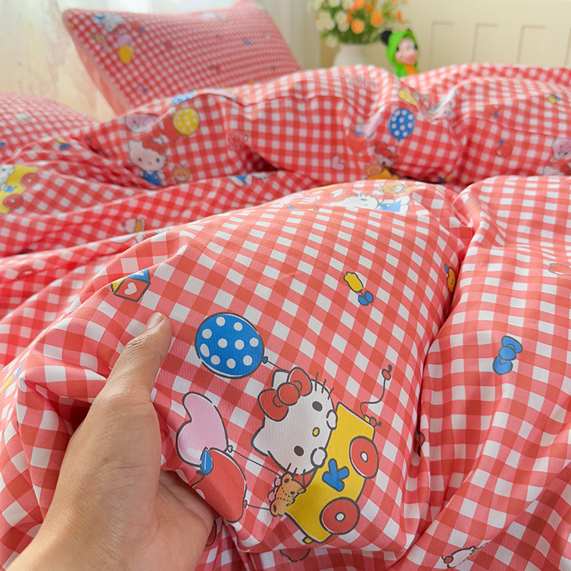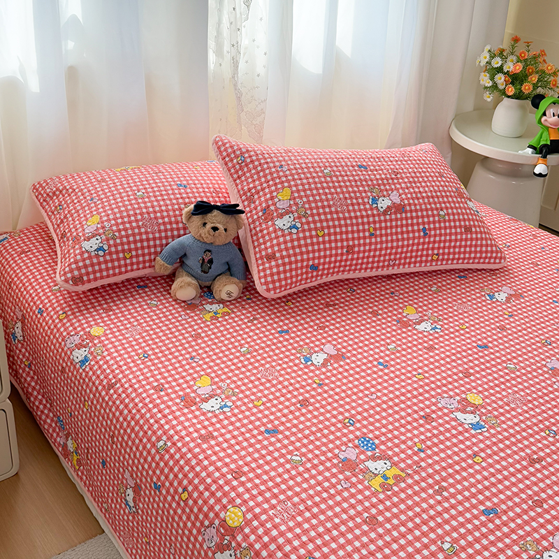 (总)淑女公社家纺 2026新款高温砂洗纯棉床盖款正版三丽鸥KT猫四件套床盖被套单件单品,爱美KT,红格KT,甜心KT,小熊KT,樱桃KT,组合图仅供参考不可下单