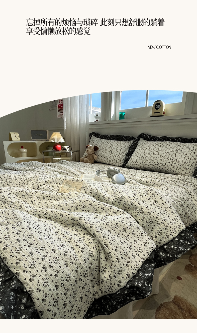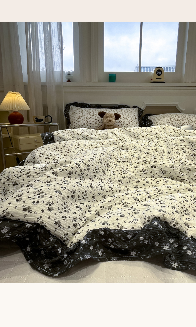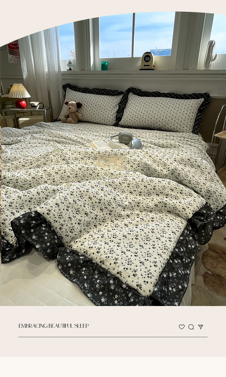 商品名称:一加一 2026新款复古碎花双层纱大豆夏被夏凉被空调被-纱边花眠 盛夏