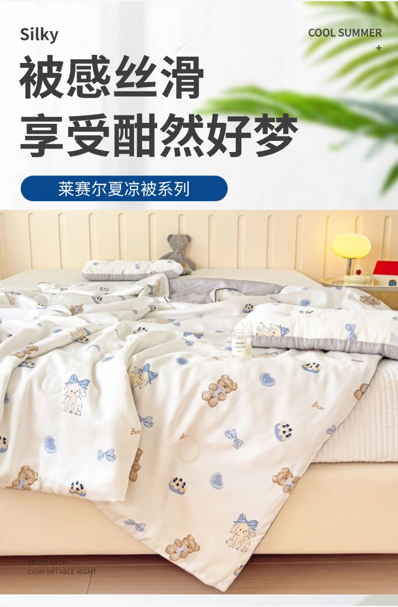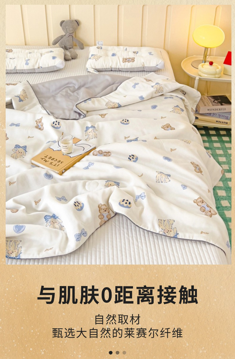 (总)十九色 2026春夏新款50莱赛尔卡通印花儿童夏被夏凉被空调被,春日玩伴,北极熊,大白鹅,大草原,瞌睡兔,蓝莓蛋糕,领结熊,伦敦巴士,汽车家族,甜心草莓,星花小马,许愿瓶,组合图仅供展示不可下单