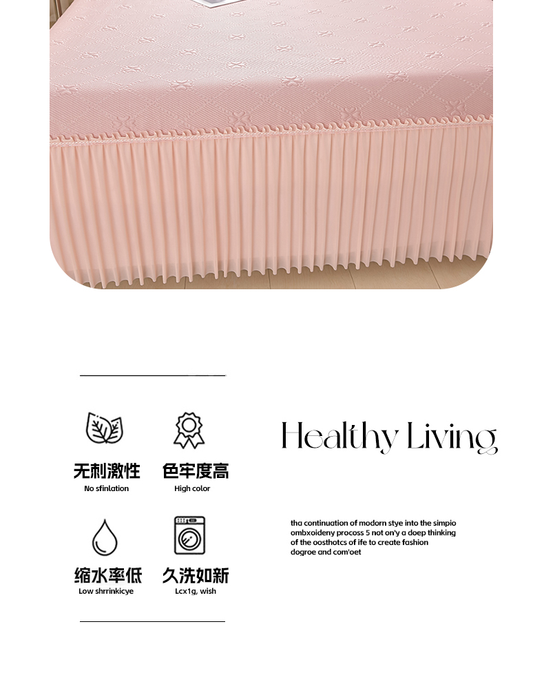商品名称:畅畅家纺 2026春夏新款聚乙烯中分子凉感冰感凉豆豆凉席席子床裙三件套幸运草 幸运草-粉