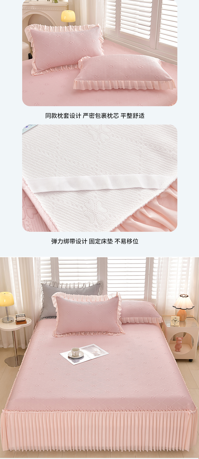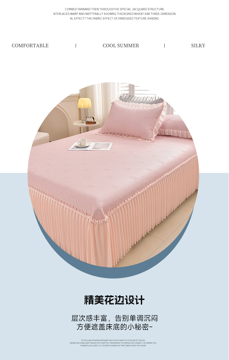 (总)畅畅家纺 2026春夏新款聚乙烯中分子双面提花高克重凉感冰感凉豆豆床裙三件套-经典玫瑰,经典玫瑰-粉,经典玫瑰-灰,经典玫瑰-蓝,经典玫瑰-绿