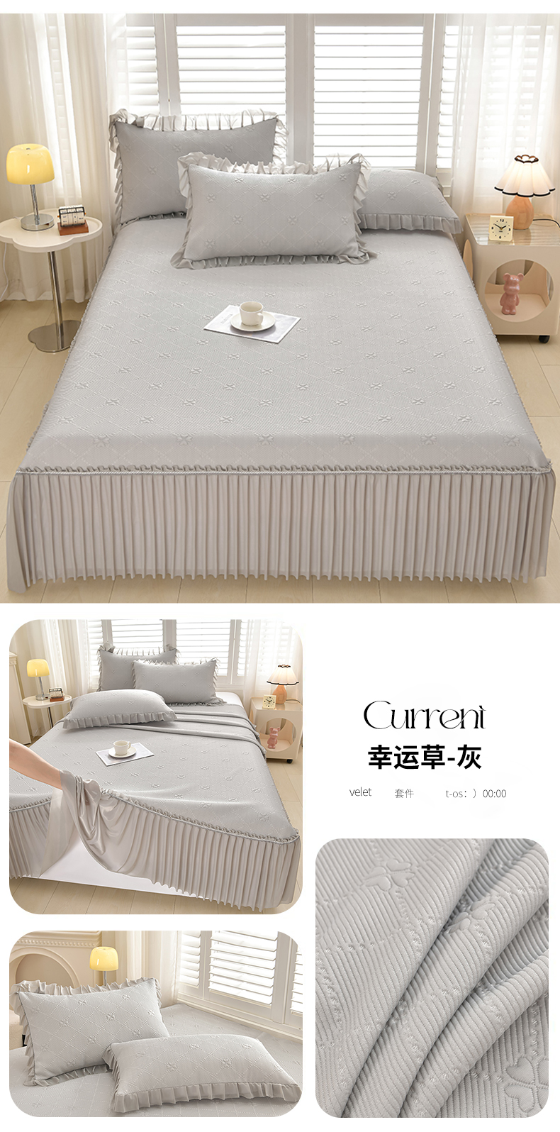 (总)畅畅家纺 2026新款网红爆款夏季立体爱心冰豆豆凉席床裙款三件套,爱心-豆沙粉,爱心-咖,爱心-浅绿,爱心-苹果绿,爱心-蓝,爱心-灰