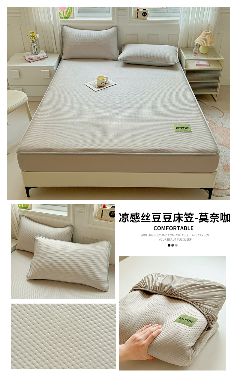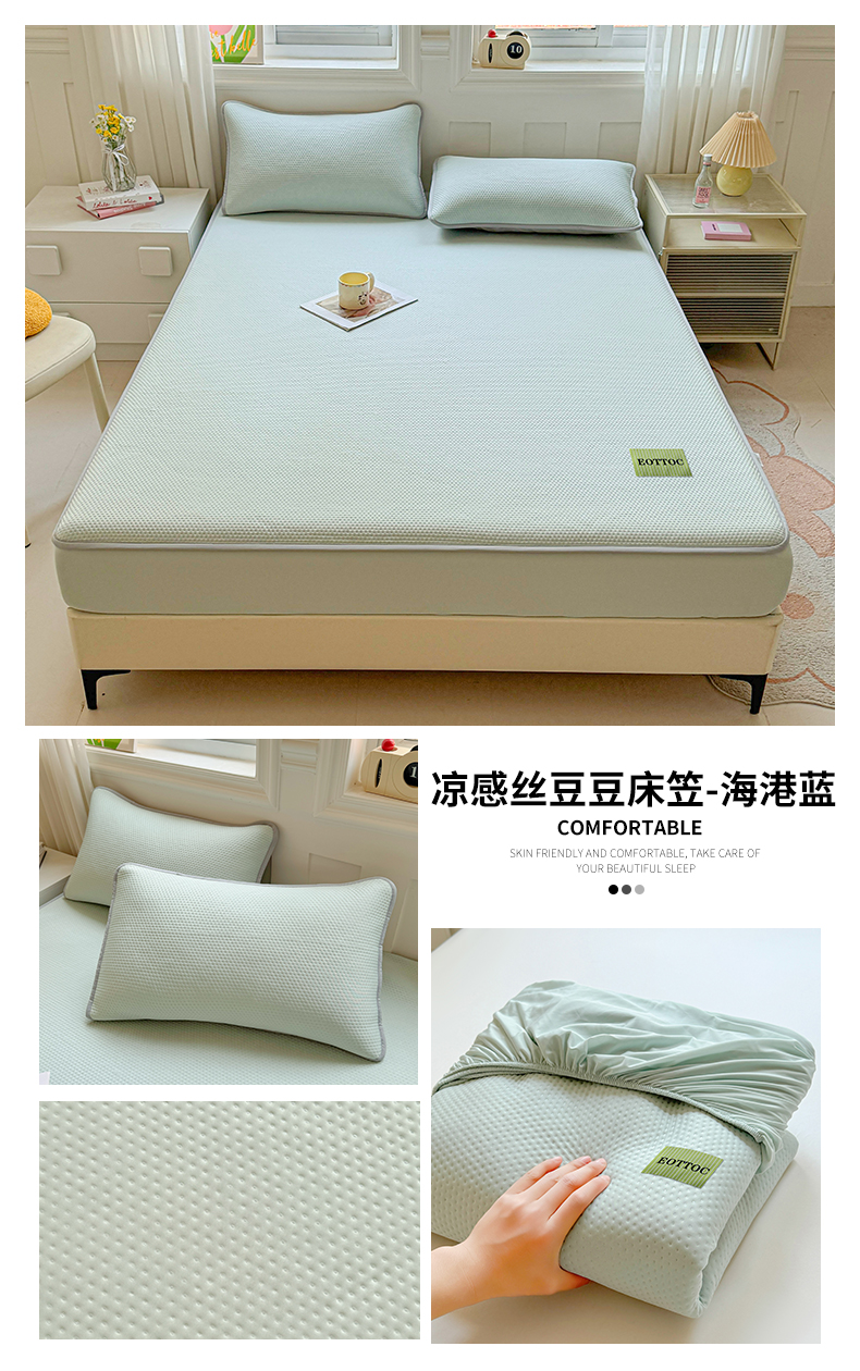 商品名称:(总)雯豆家纺 2026春夏新款凉感丝豆豆床笠三件套加厚三明治床垫保护套