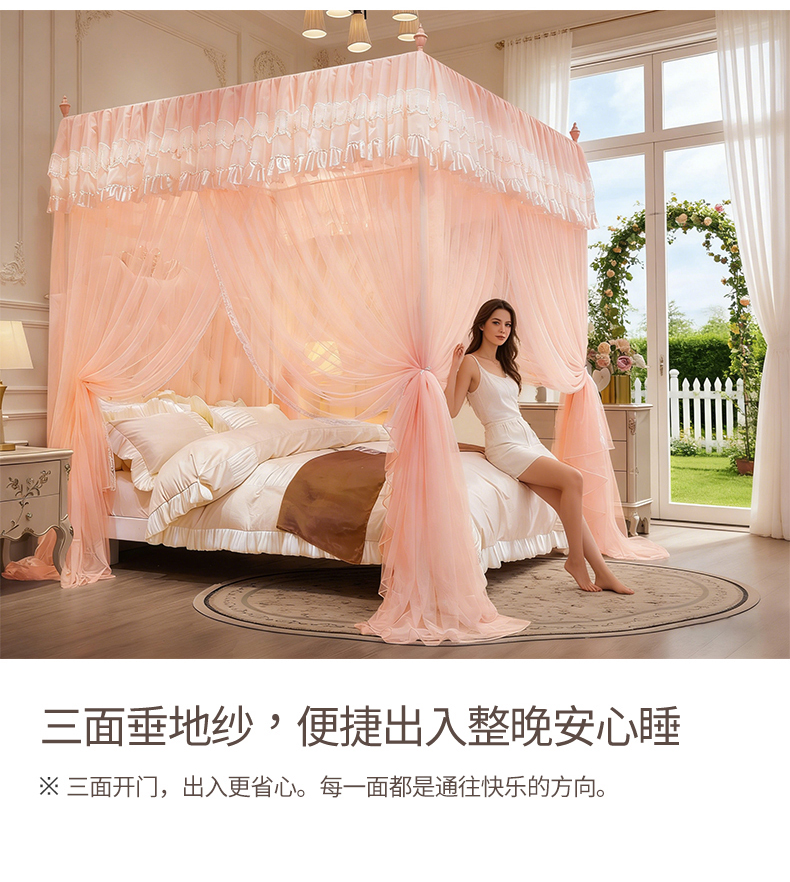 当前位置: 91家纺网 > 商品网购 > 床上用品 > 蚊帐 > 宫廷蚊帐 > 舞夜盛世 【欧式风情】2026新款落地三开门宫廷蚊帐 欧式情怀-玉色