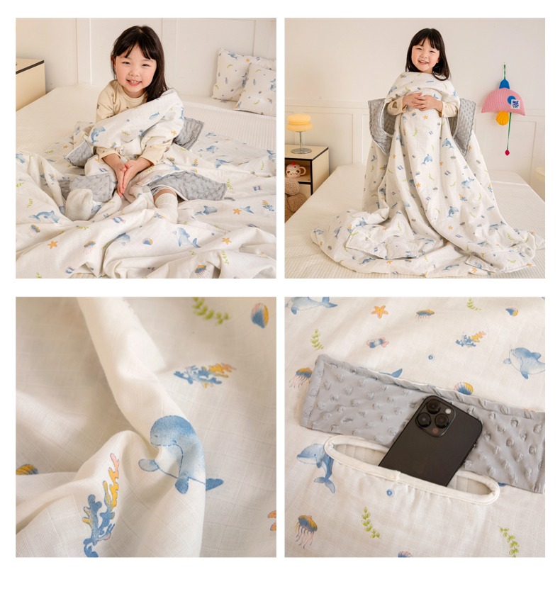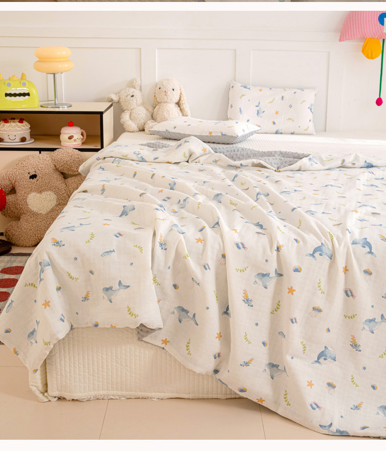 • 91家纺网 家纺一手货源 找家纺 十九色 2026春夏新款全棉华夫格纱布凉感防踢被拥抱被夏被夏凉被空调被 小海豚
