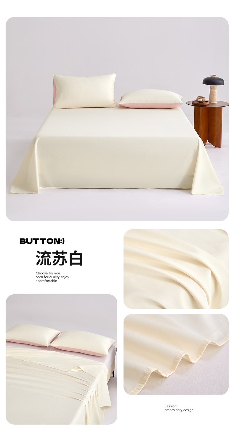 (总)合欢(原天一阁) 2026新款50s双股长绒棉全棉纯棉床单三件套,流苏白,香芋紫,银竹灰,暖心粉,青柠绿,时空灰,水军蓝,香槟金,组合图(仅供展示不可下单)