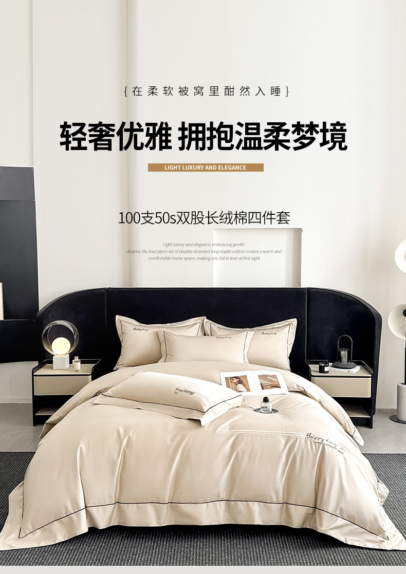 新方向 【控价 提供买家秀】2026新款 刺绣50s双股全棉贡缎长绒棉四件套-亚瑟(控价 标准328元 加大348元) 亚瑟-香槟