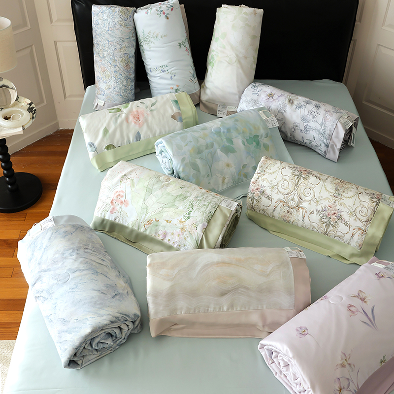久典家居 2026新款20%桑蚕丝+80%聚酯纤维宽边夏被四件套 艾尔莎