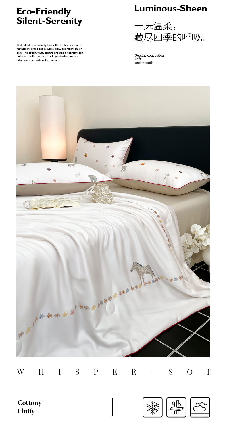 当前位置: 91家纺网 > 商品网购 > 床品套件 > 四件套 > 其它四件套 > 慕晨 2026新款莱赛尔数码印高级简奢卡通大版印花丝滑被套四件套 斑马--米白