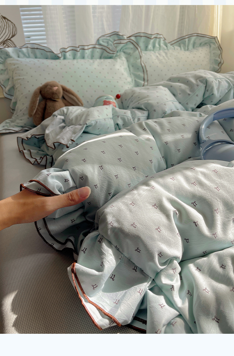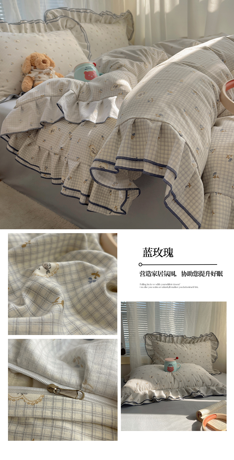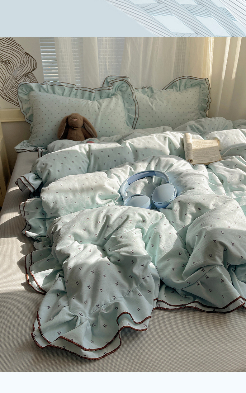 当前位置: 91家纺网 > 商品网购 > 床品套件 > 四件套 > 水洗棉四件套 > 瑞莱 (持续上新)2026新款舒柔水洗棉小清新双层花边四件套 千千结
