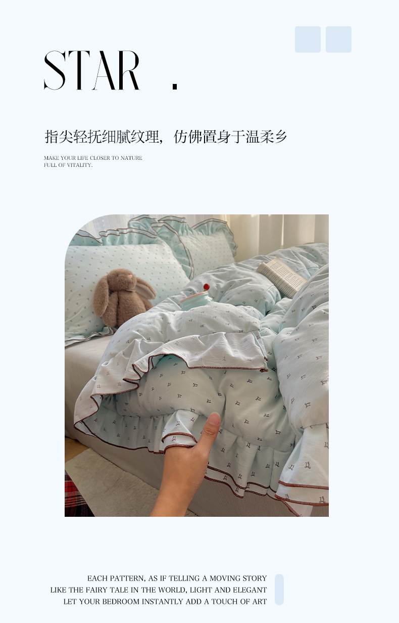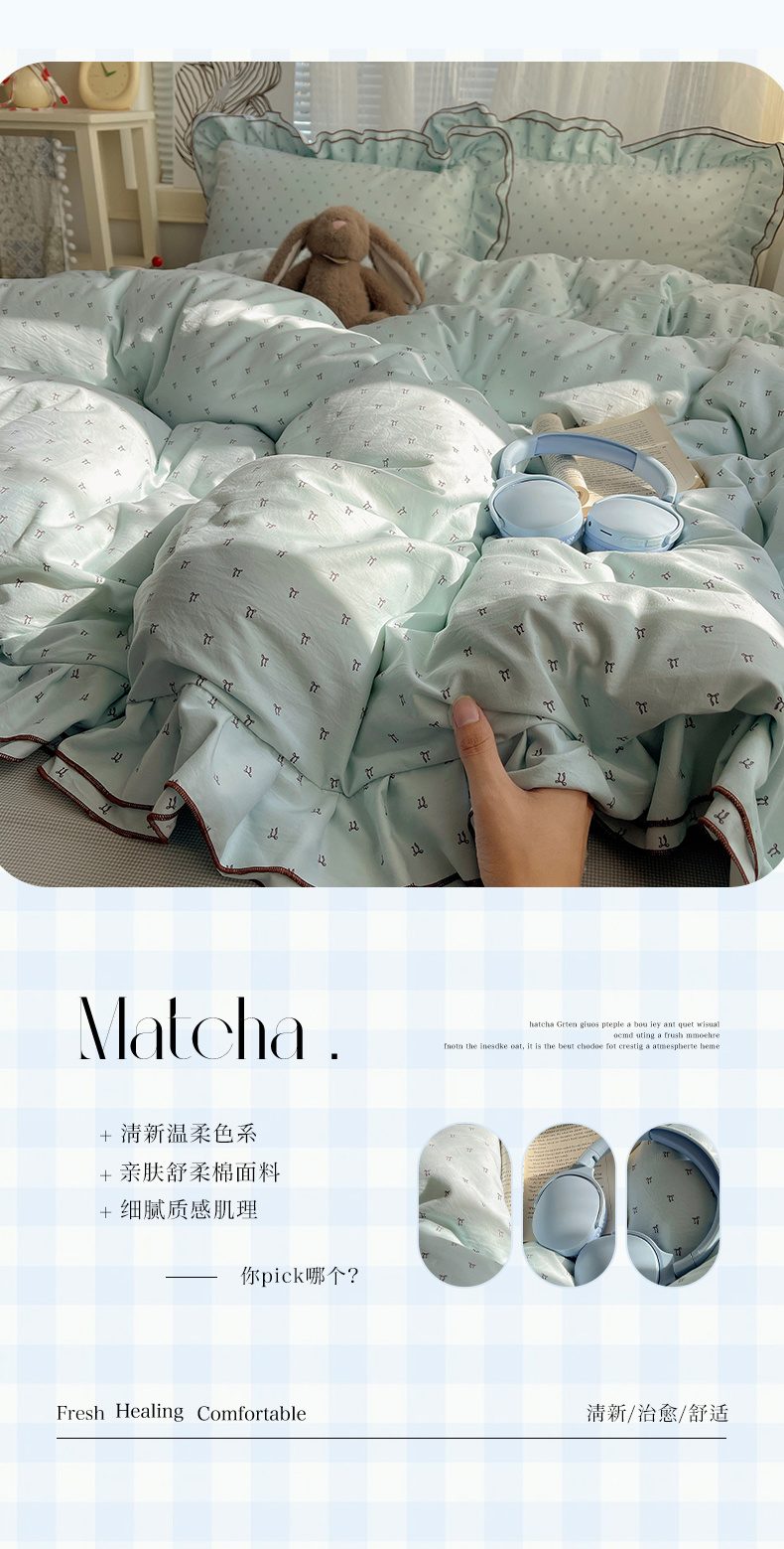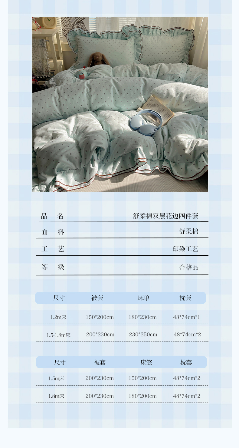 当前位置: 91家纺网 > 商品网购 > 床品套件 > 四件套 > 水洗棉四件套 > 瑞莱 (持续上新)2026新款舒柔水洗棉小清新双层花边四件套 千千结