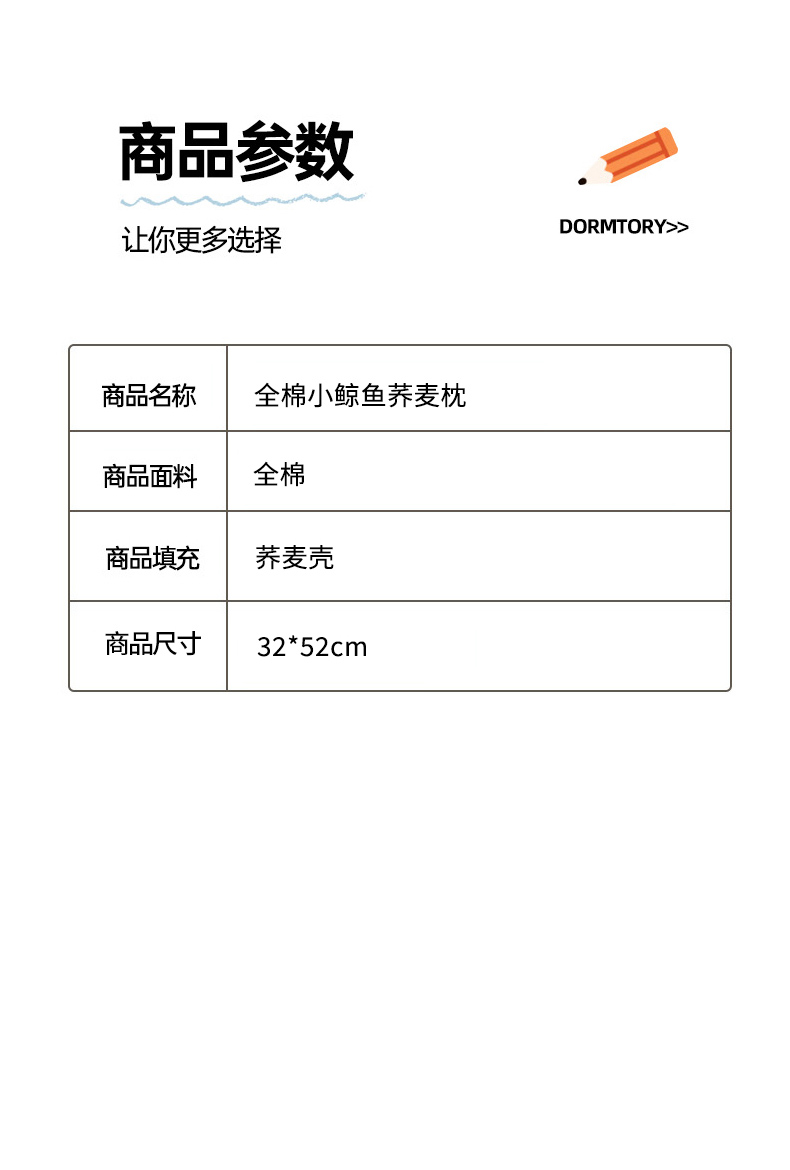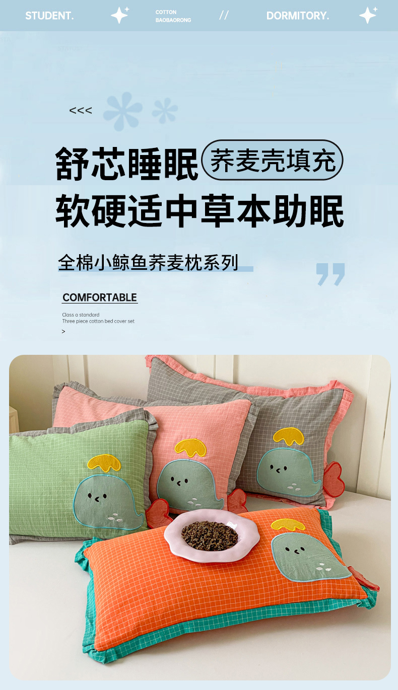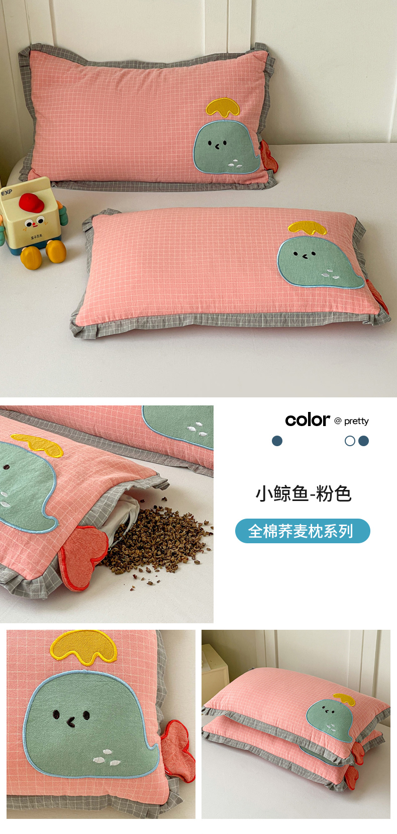 商品名称:梦叶草 2026新款全棉小鲸鱼荞麦枕枕头枕芯 小鲸鱼荞麦枕-粉色