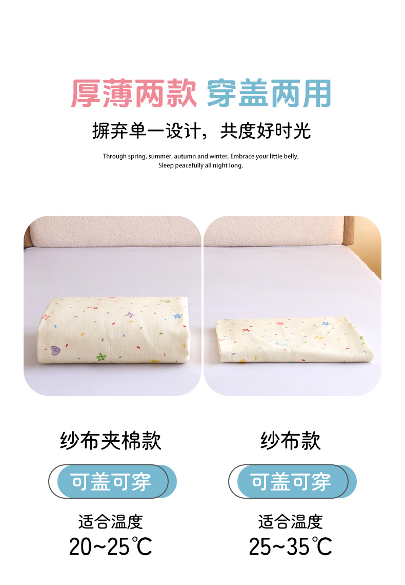 商品名称:(总)拾小柒 2026新款全棉双层纱多功能防踢被