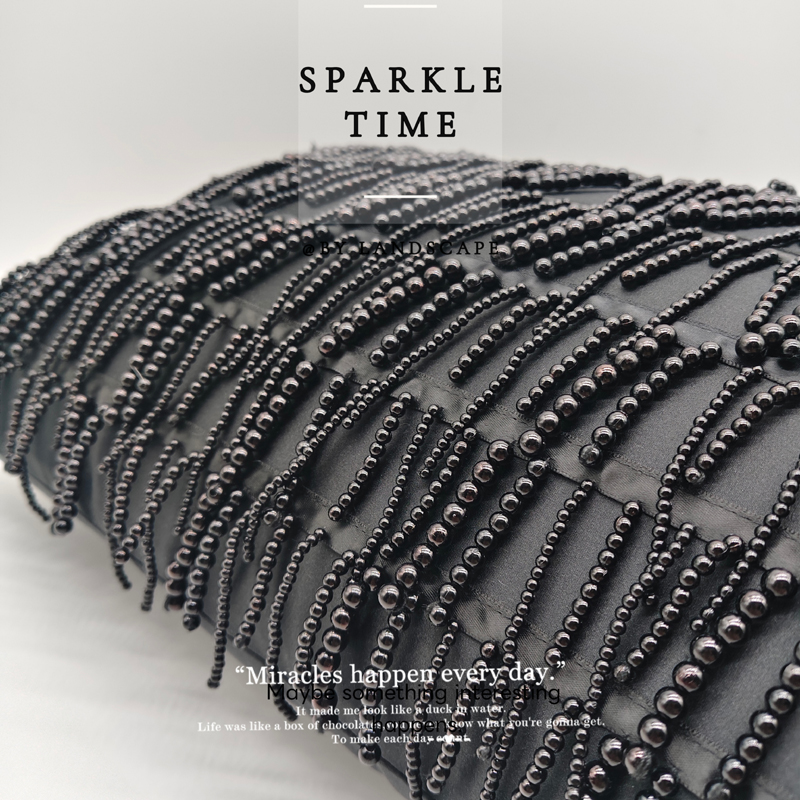 (总)澜屿 2026新款珍珠镶钻抱枕装饰枕腰枕枕芯-半璇,半璇白,半璇黑