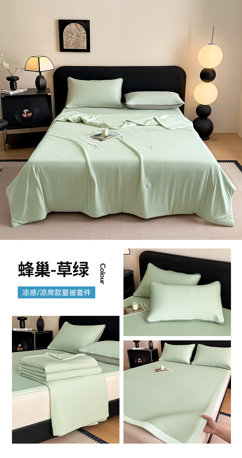 当前位置: 91家纺网 > 商品网购 > 床品套件 > 四件套 > 夏被四件套 > 欧邦 2026新款PE中分子提花冰豆豆凉席床笠夏被套件-蜂巢系列 蜂巢-草绿-床笠款