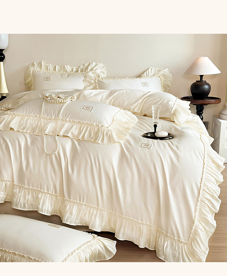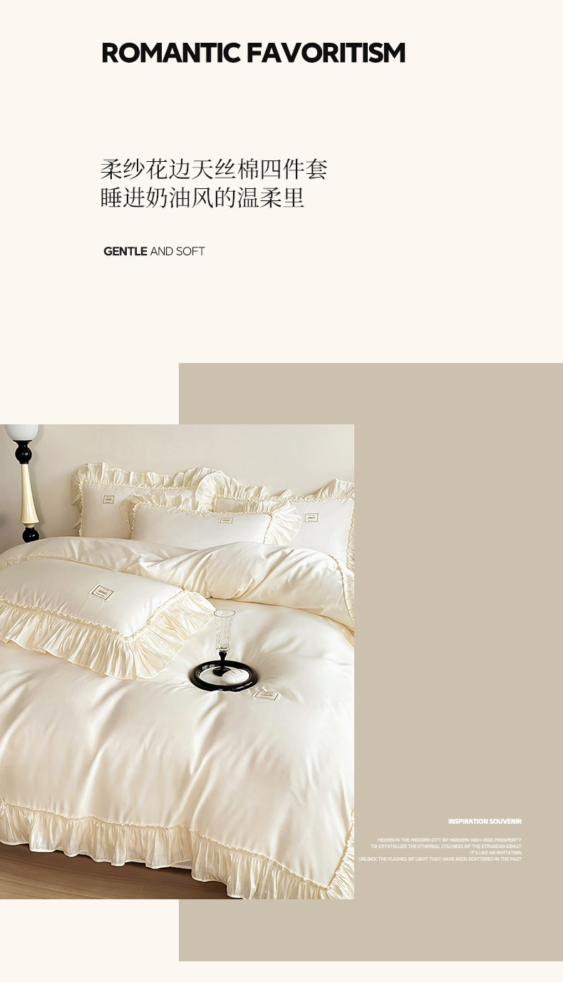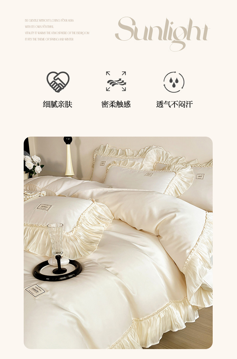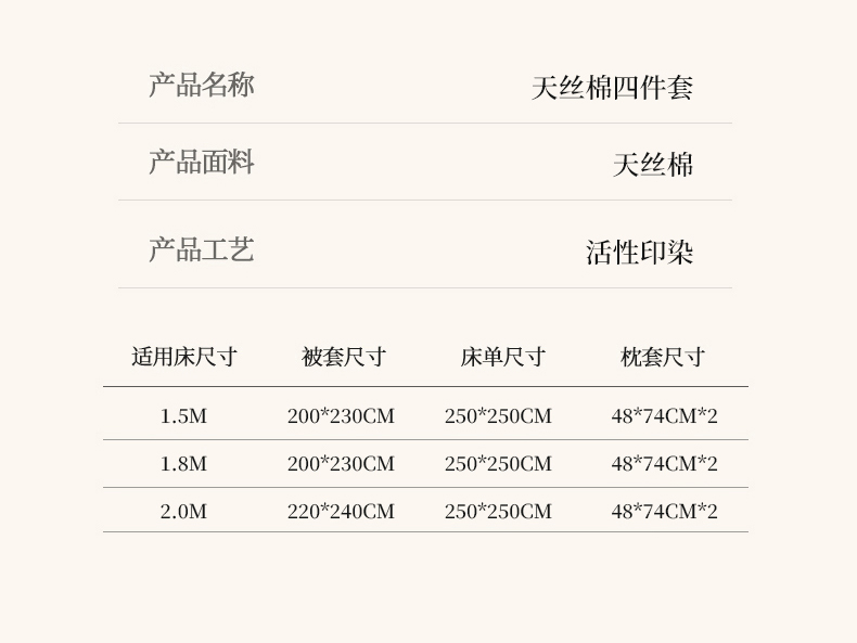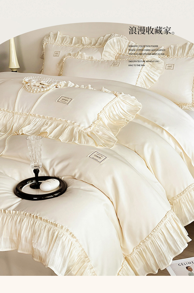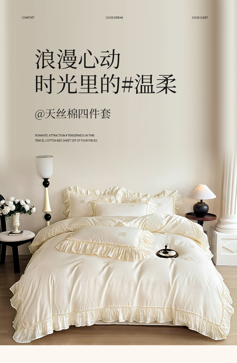 商品名称:花香四季家纺 2026新款亲肤天丝棉四件套 奶油白