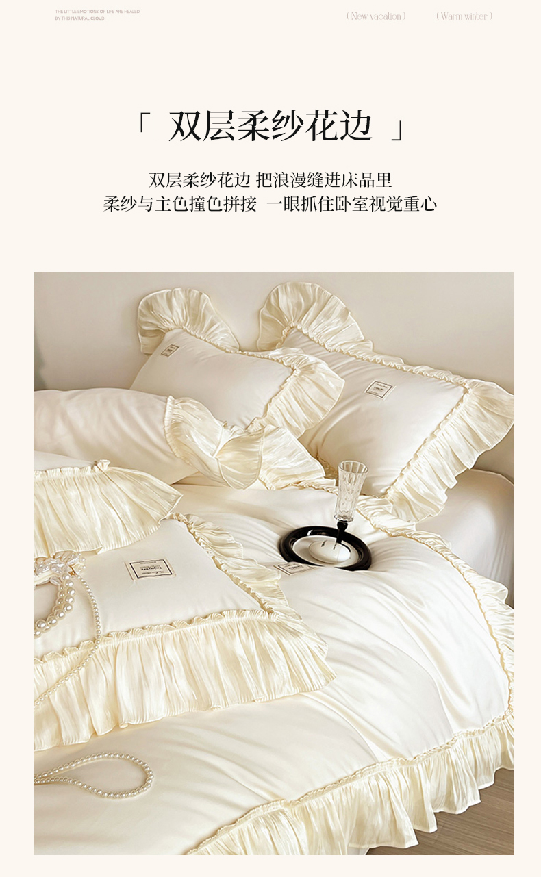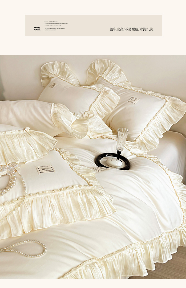 (总)花香四季家纺 2025新款天丝棉床裙款四件套-倾城,倾城-白,倾城-粉