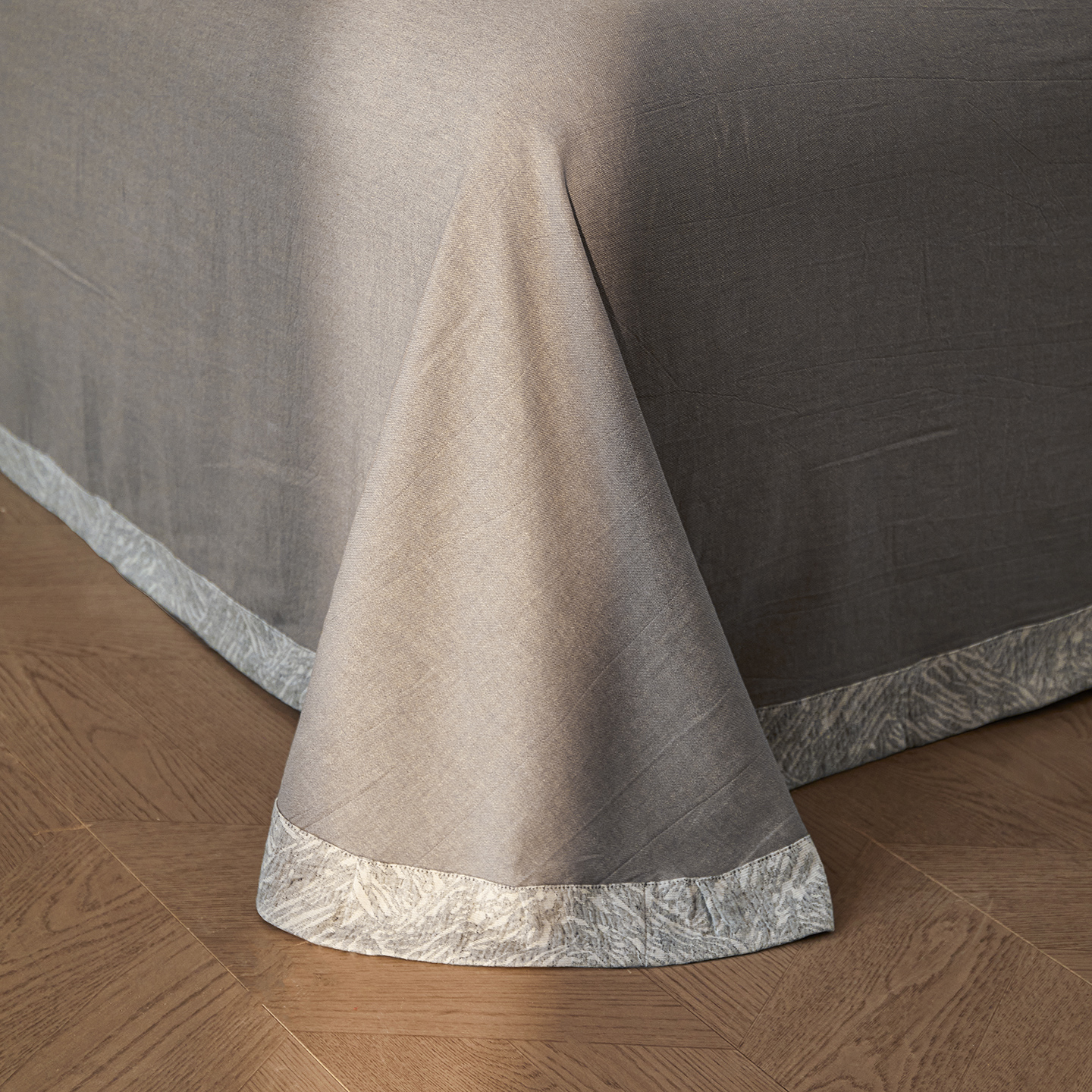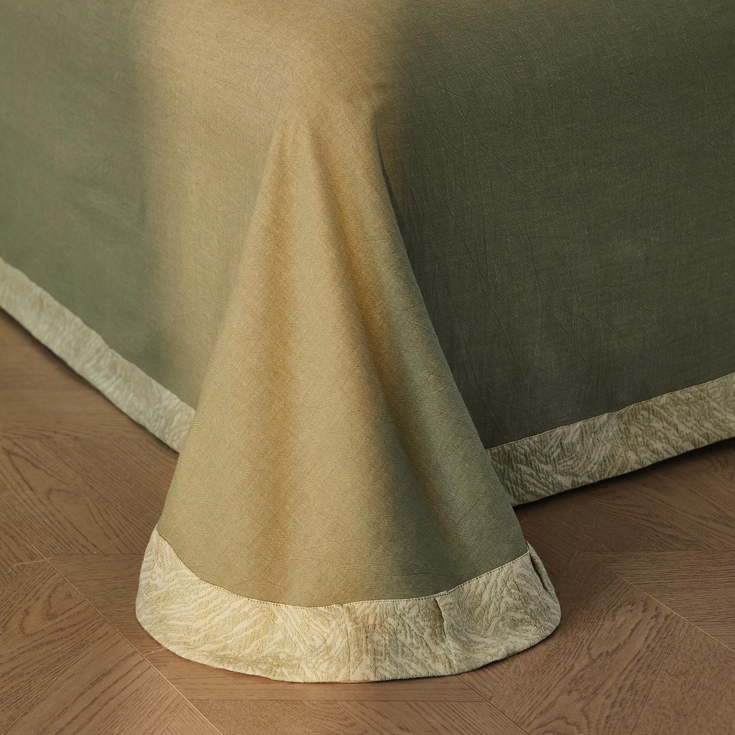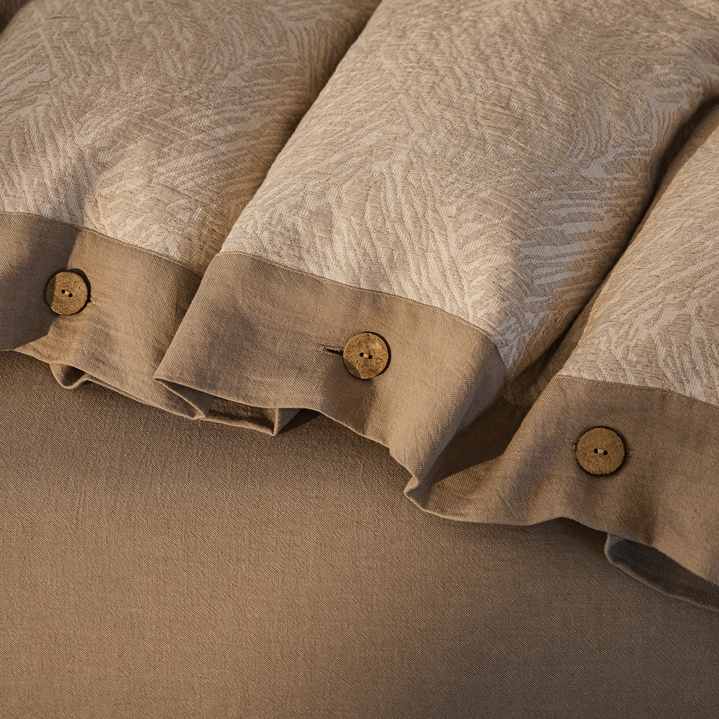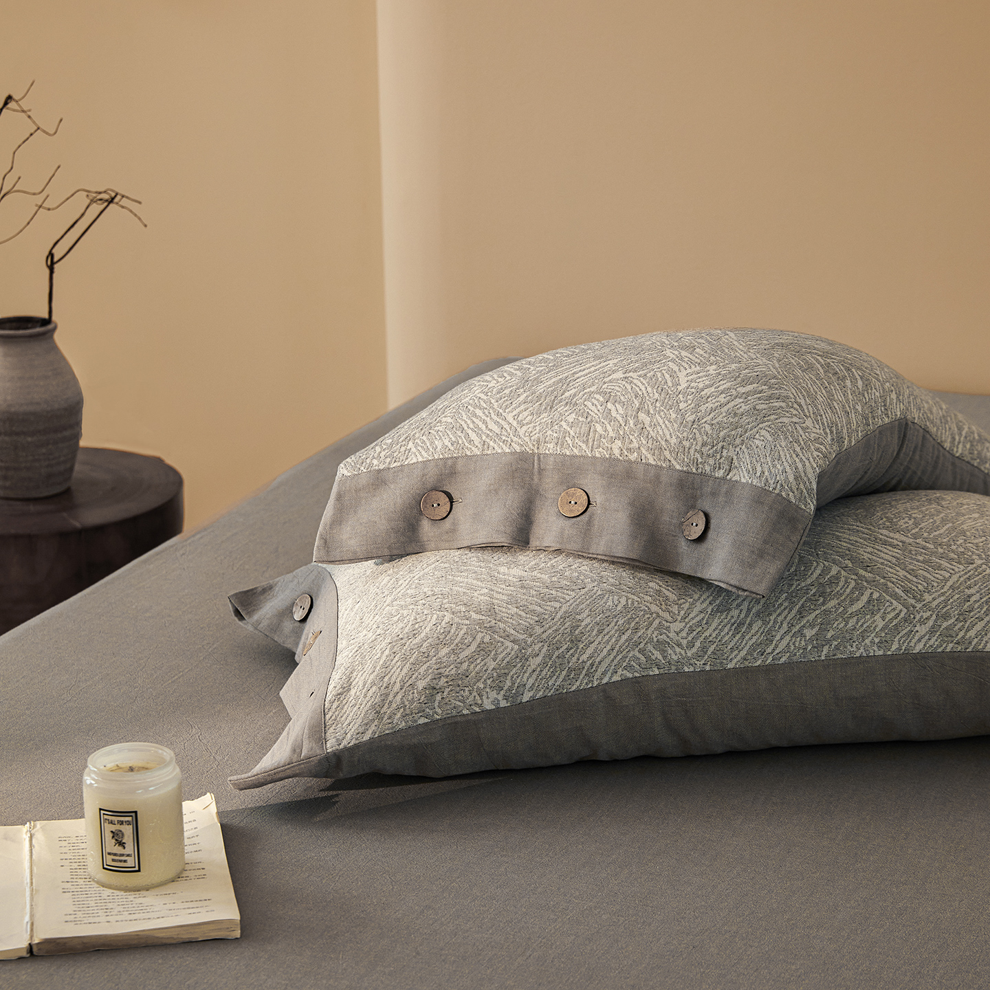 商品名称:(总)仰望棉麻双层纱供应链 2026新款迷雾之城一花三色全棉色织提花双层纱纽扣款四件套