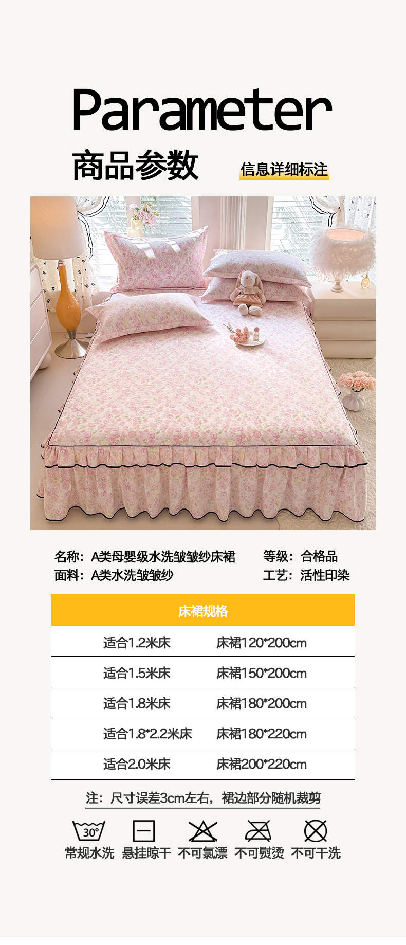 150x200cm单床裙+枕套一对 | ¥33.00 |