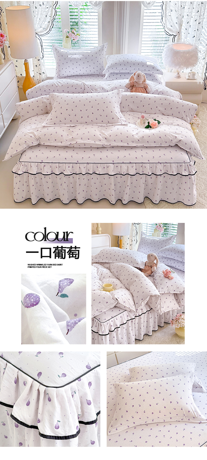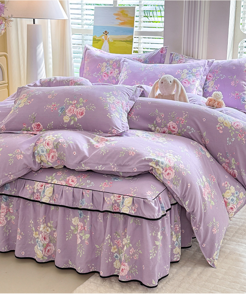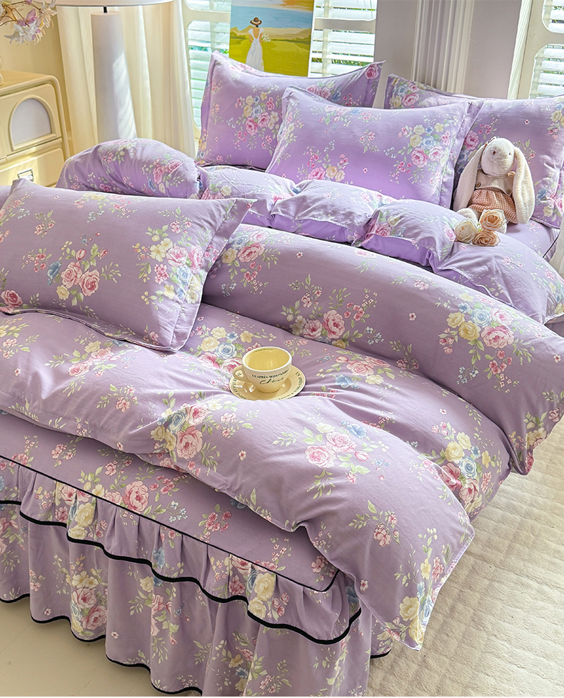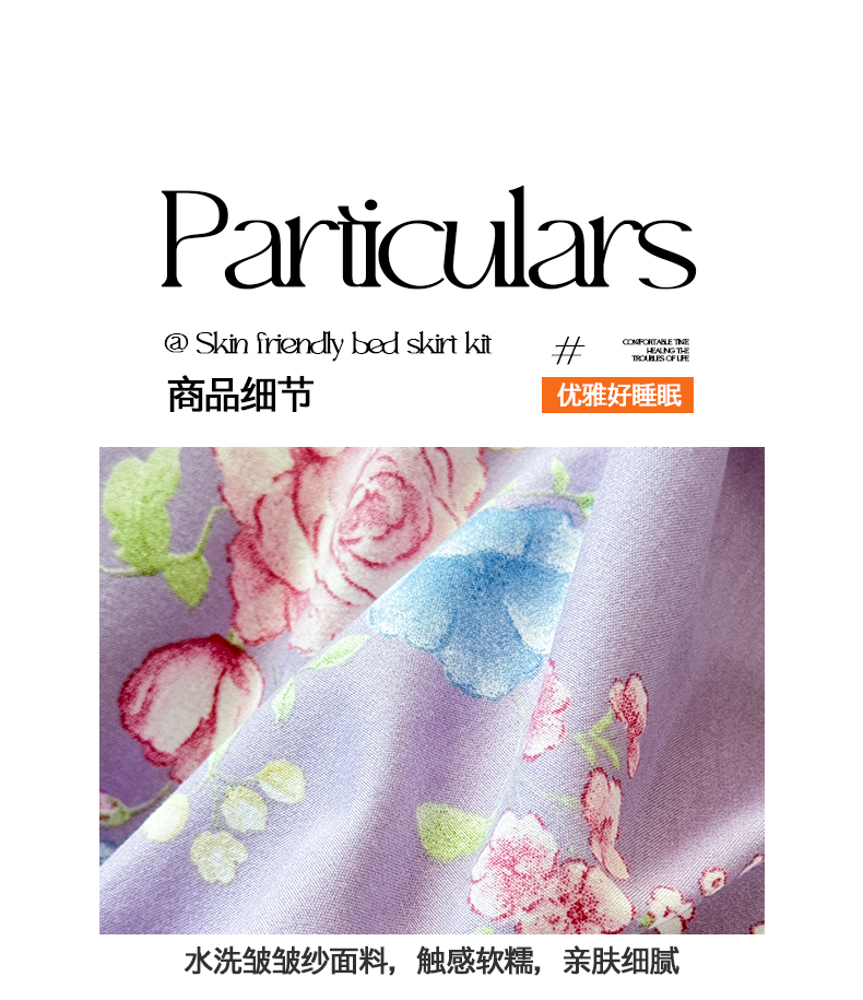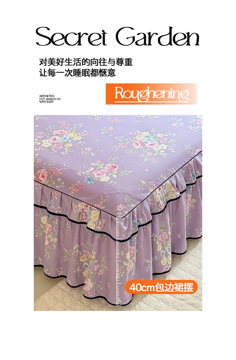 当前位置: 91家纺网 > 商品网购 > 床品套件 > 四件套 > 化纤普通四件套 > 优家居 2026新款A类水洗棉床裙四件套皱皱纱韩版公主风花边床罩直播爆款外贸定制 秘园絮语