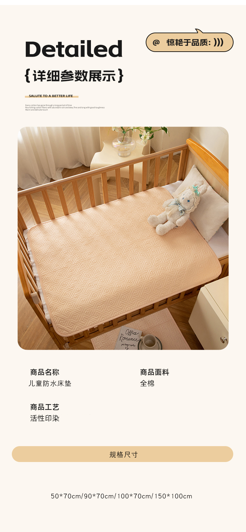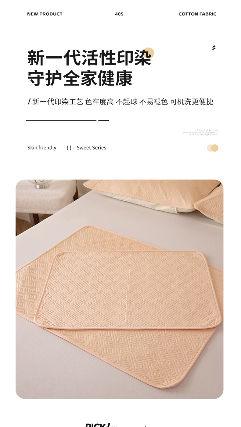 商品名称:(总)美达家纺 2026新款A类全棉纯色防水儿童款床垫隔尿垫姨妈垫护理垫