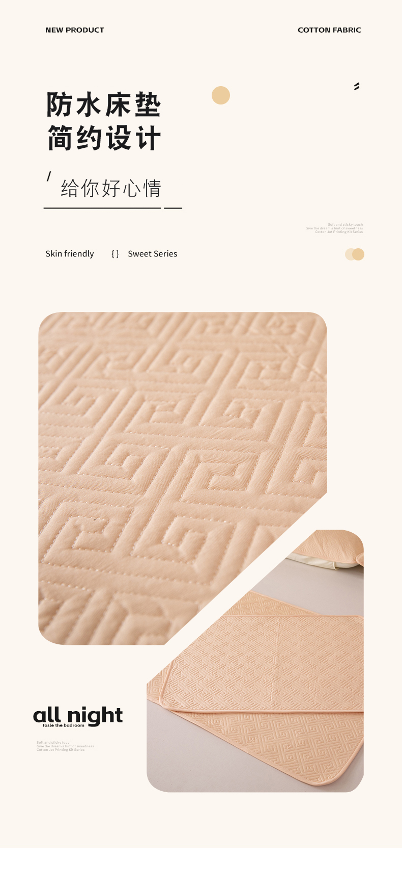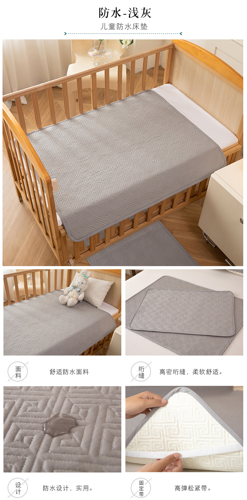 (总)美达家纺 2026新款A类全棉纯色防水防滑床垫床盖,防水-浅灰,防水-米白,防水-米咖,防水-浅绿,防水-浅玉