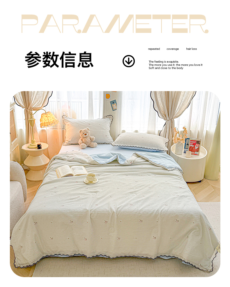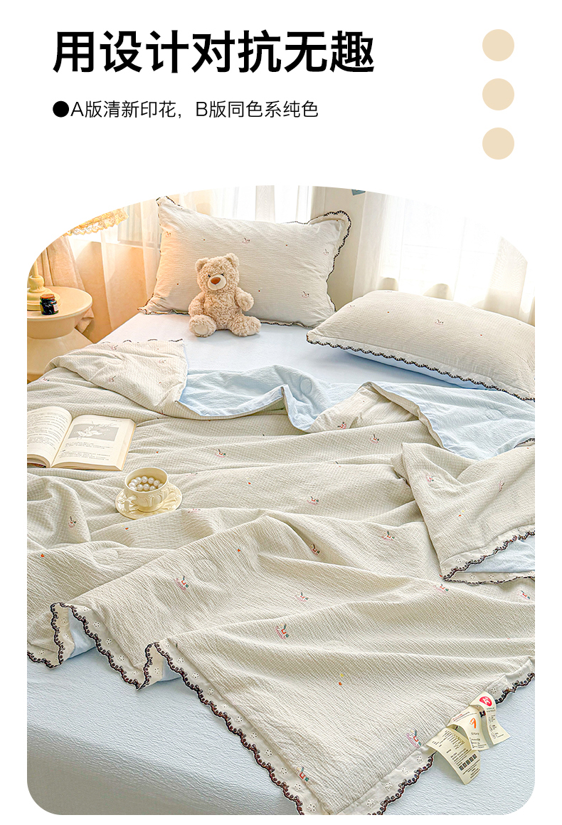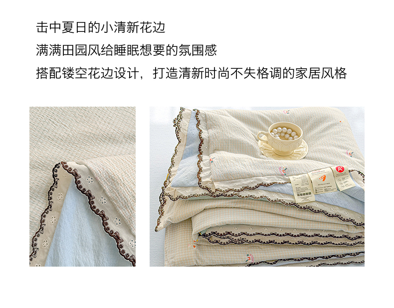 • 91家纺网 家纺一手货源 找家纺 (总)招财星家纺 2026新款A类全棉花边云感双层纱大豆纤维夏被四件套夏被夏凉被空调被(带质检报告买家秀),花边款-金枝玉叶,花边款-缤纷花朵,花边款-草莓气球,花边款-格子木马-蓝,花边款-格子木马-绿,花边款-花季,花边款-花语,花边款-花园秘密,花边款-可爱熊猫,花边款-喇叭花,花边款-绿曼,花边款-萌宠花园,花边款-幸运结-蓝,花边款-幸运结-绿,花边款-长颈鹿